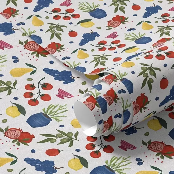 Papel pintado Estampado botánico de frutas brillantes sobre fondo blanco Nr. a00637v1
