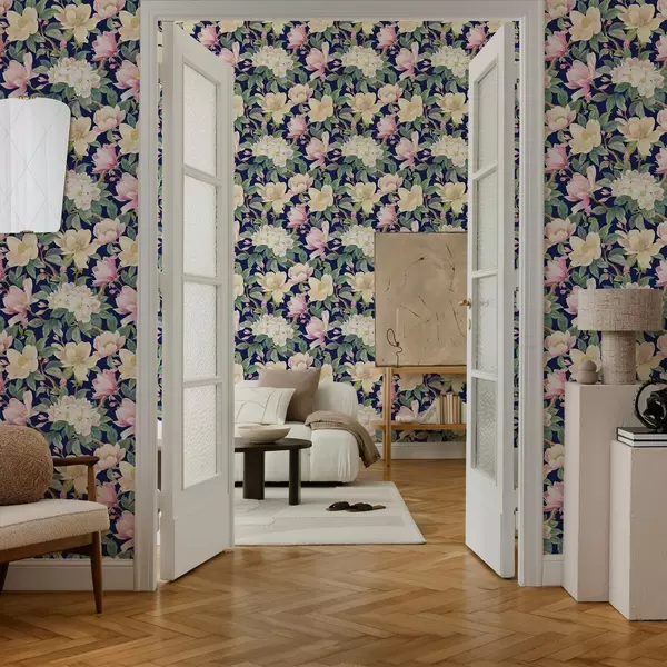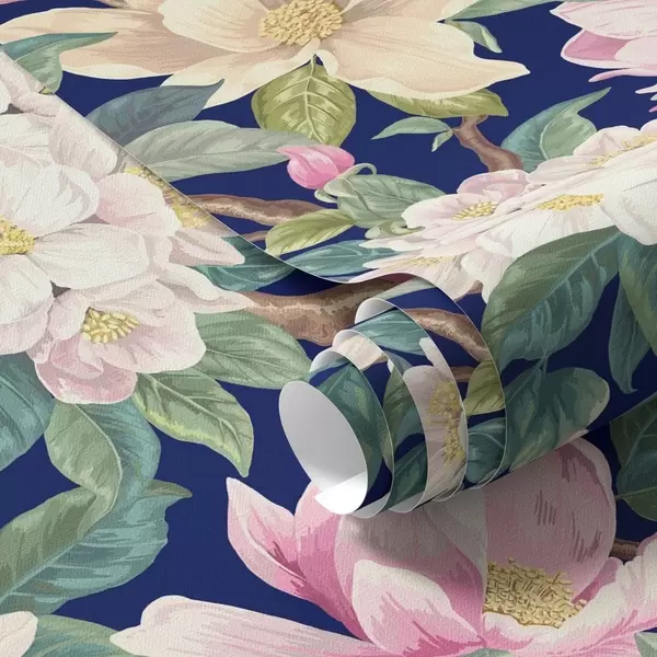 Papel pintado Magnolias y capullos sobre un fondo azul marino intenso Nr. a00644v1