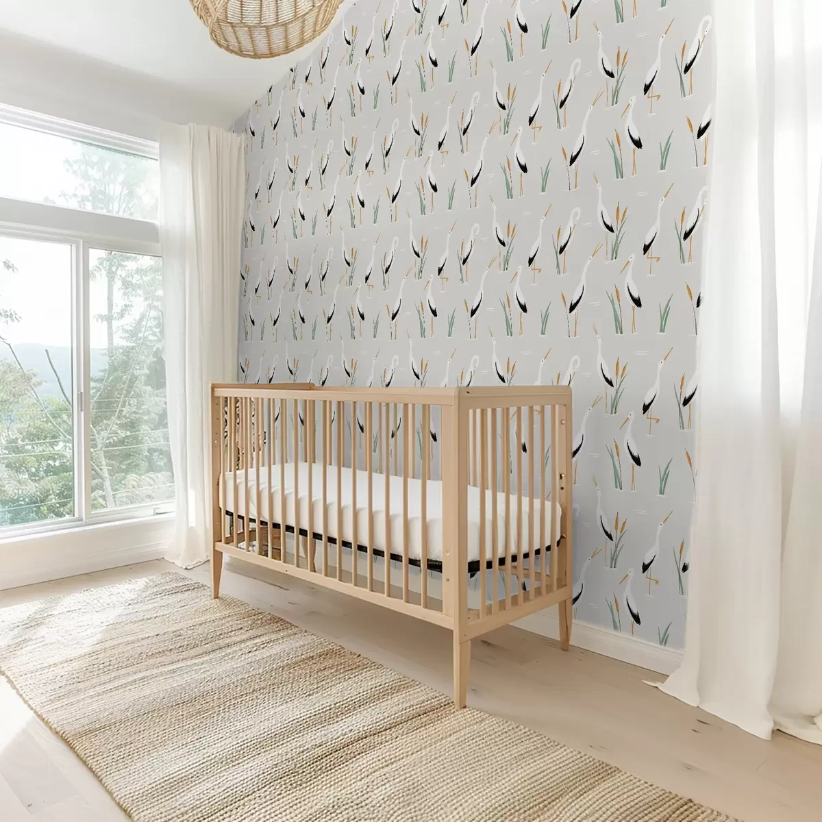 Papel pintado Garzas entre juncos sobre un fondo gris claro Nr. a00650