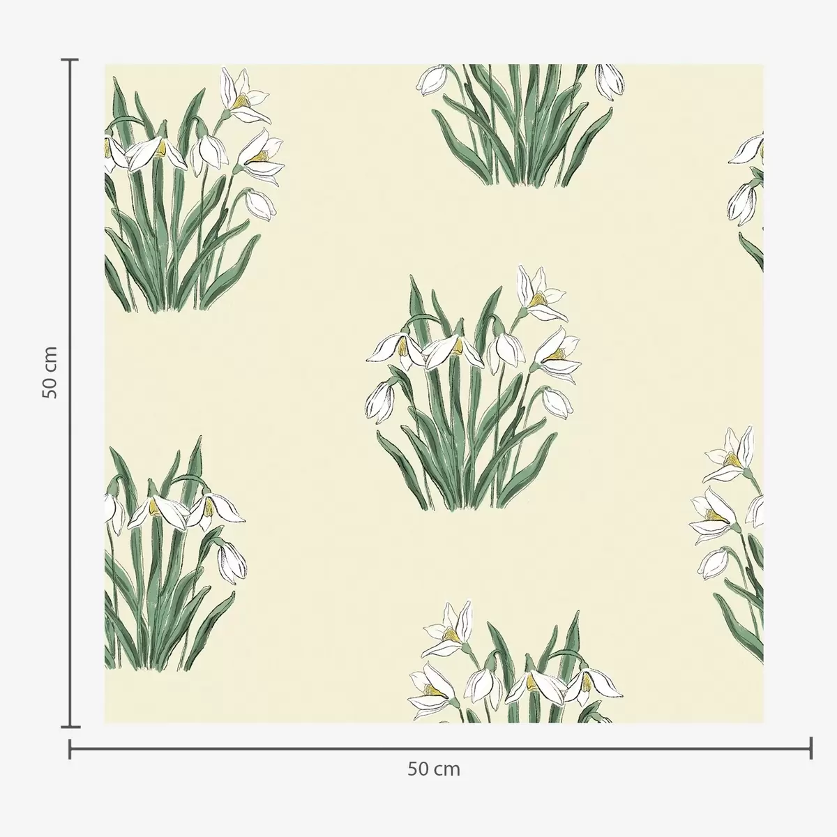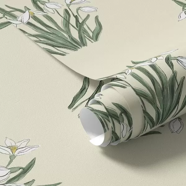 Papel pintado Campanillas de invierno con hojas verdes sobre fondo crema Nr. a00651v2