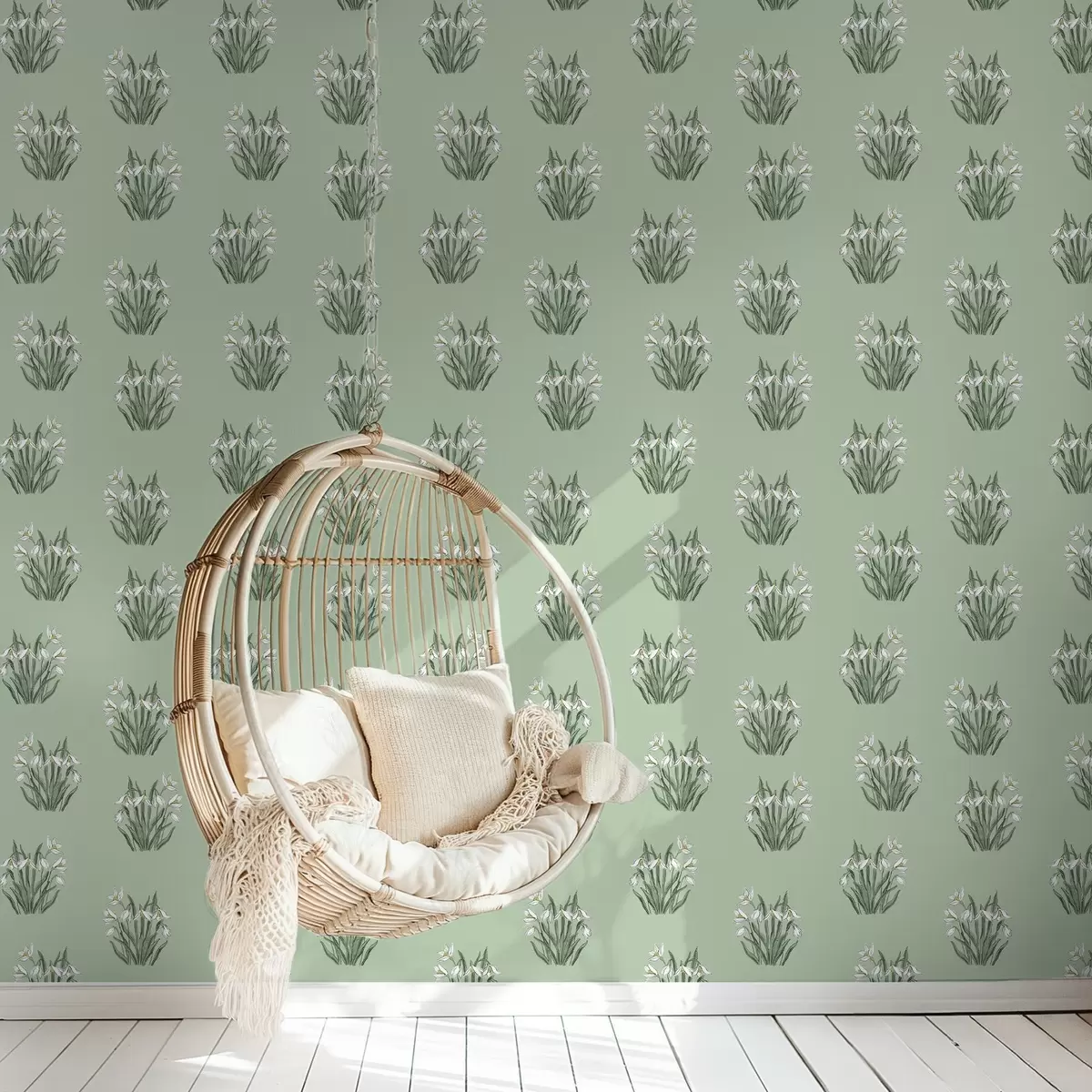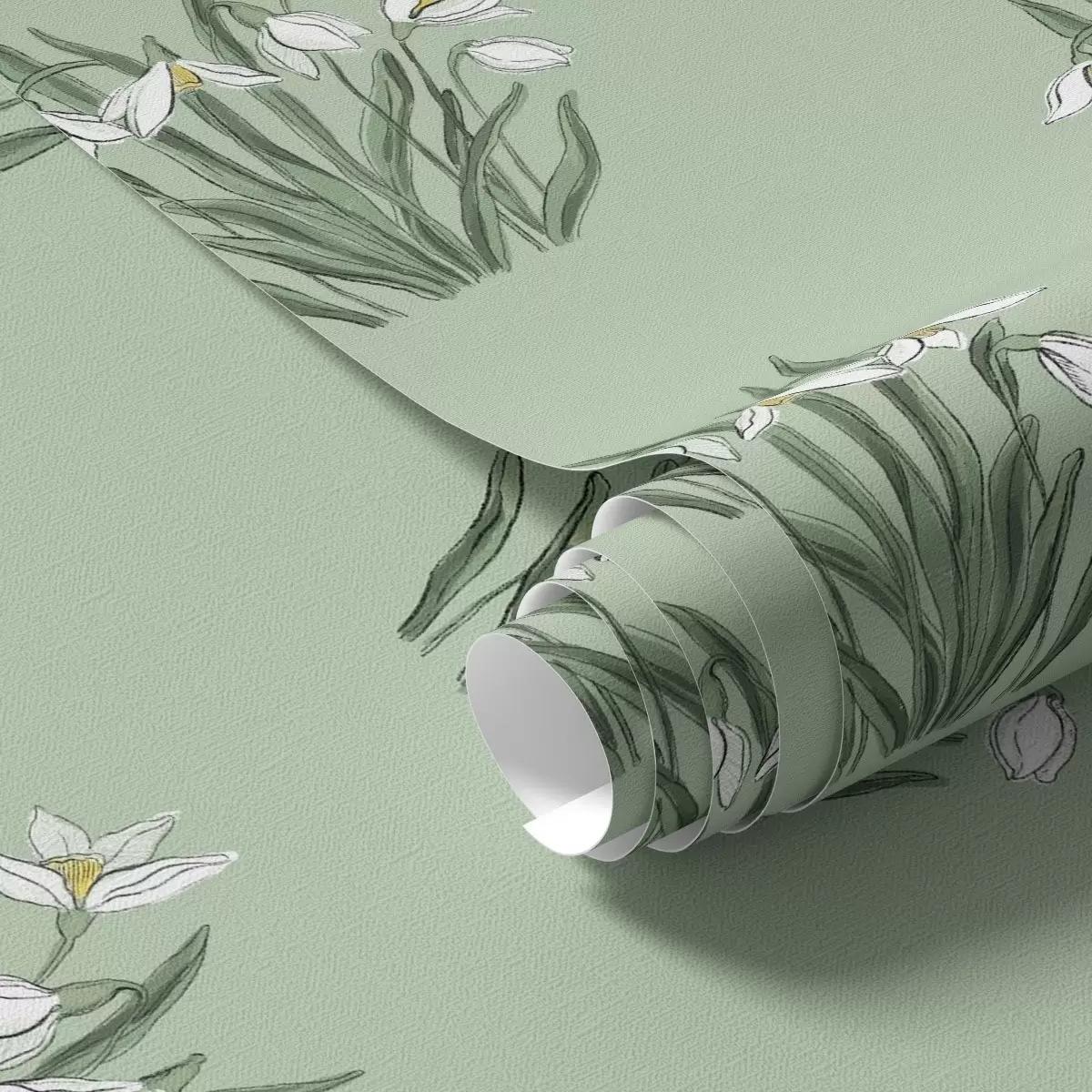 Papel pintado Campanillas de invierno con hojas verdes sobre un fondo verde suave Nr. a00651v4