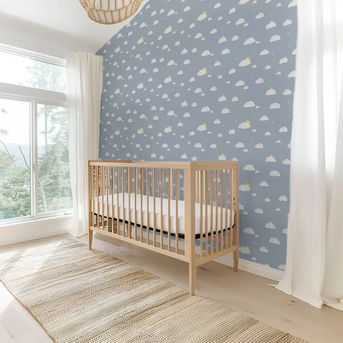 Papel pintado Nubes suaves, estrellas y sol sobre un fondo azul Nr. a00652