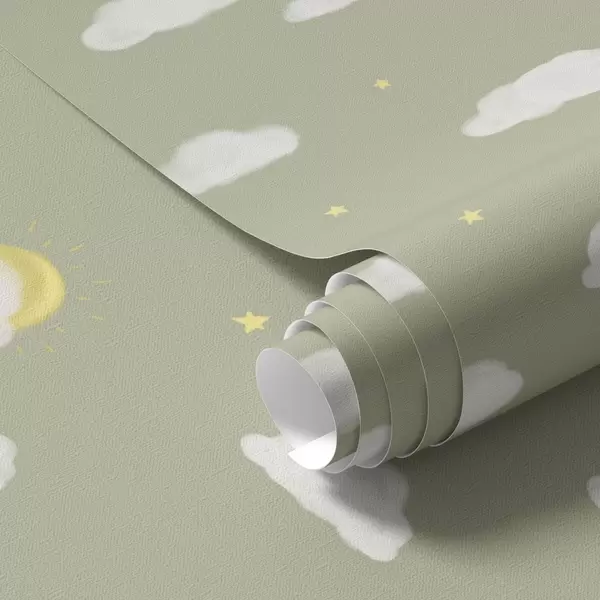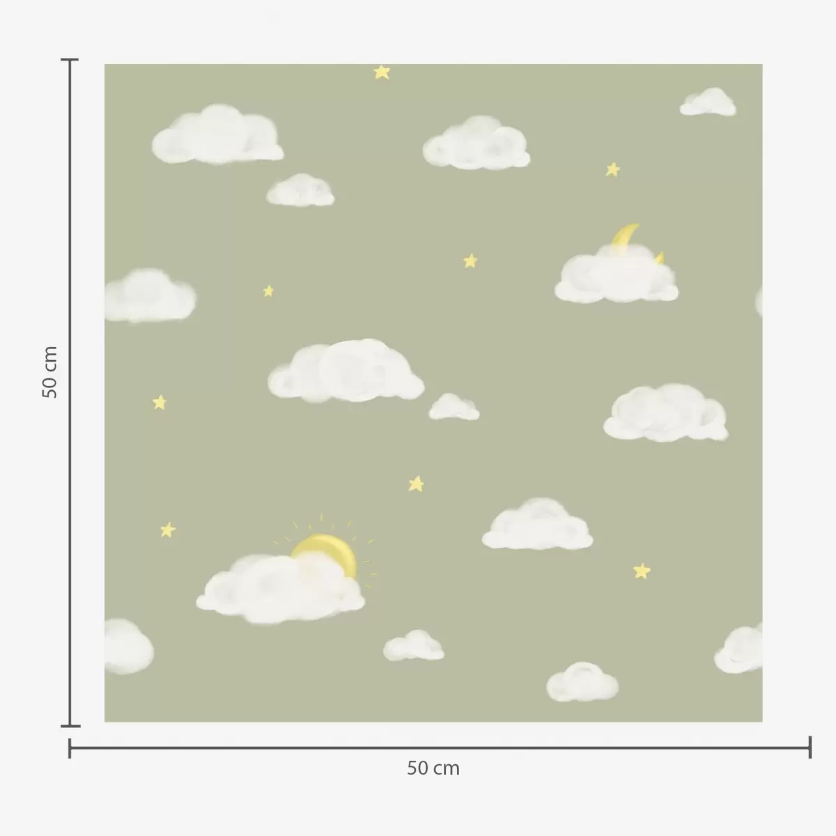 Papel pintado Nubes suaves, estrellas y sol sobre un fondo gris verdoso Nr. a00652v1