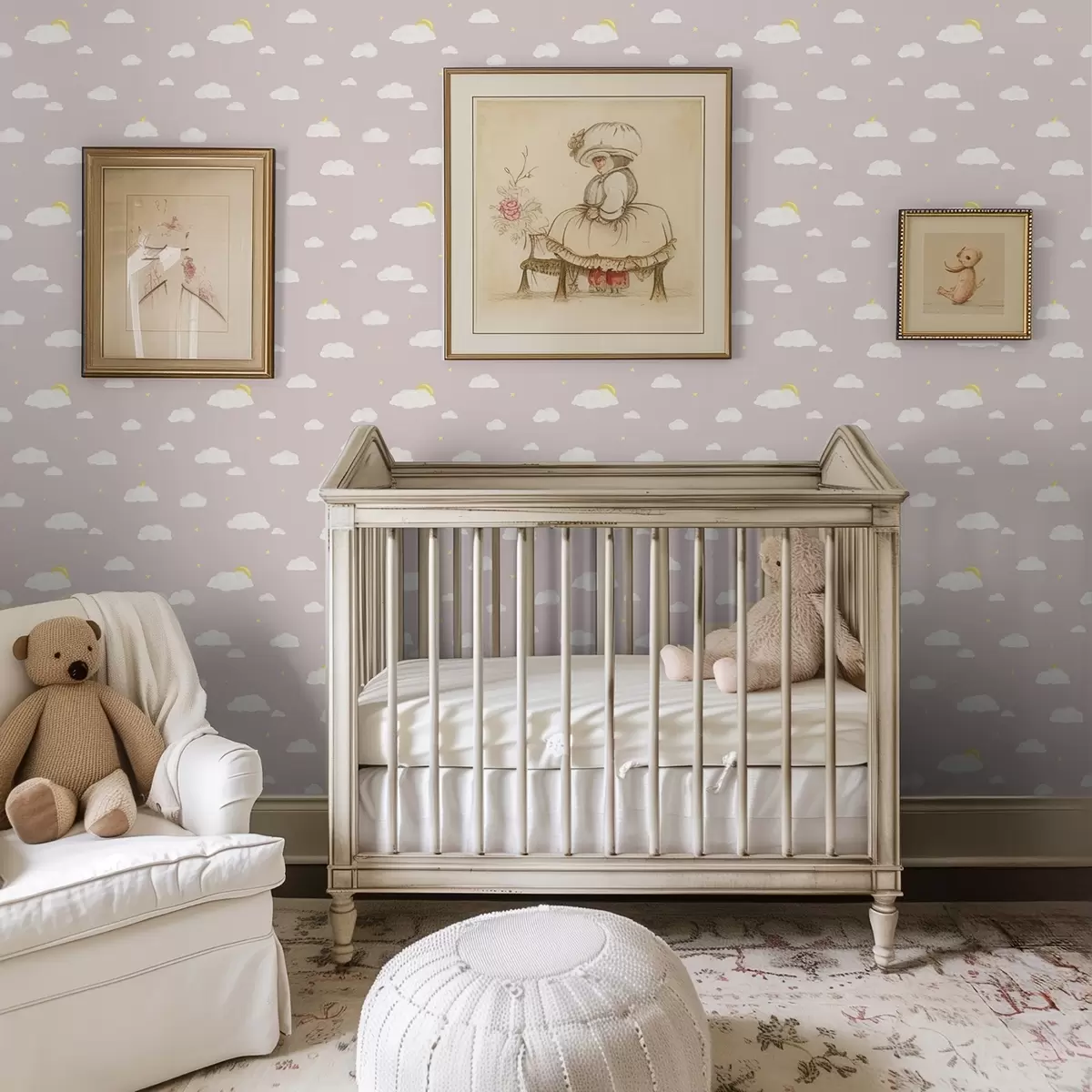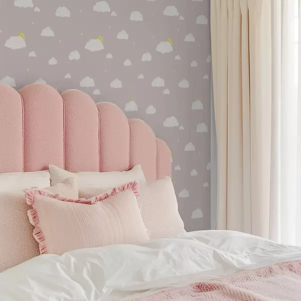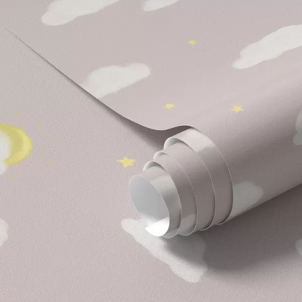 Papel pintado Nubes suaves, estrellas y sol sobre un fondo gris rosáceo Nr. a00652v2