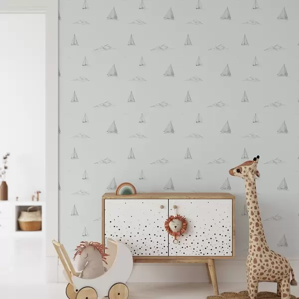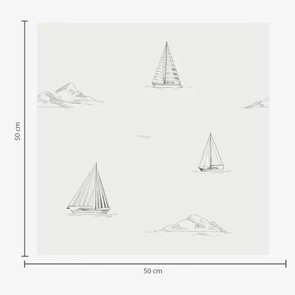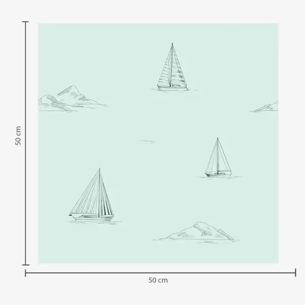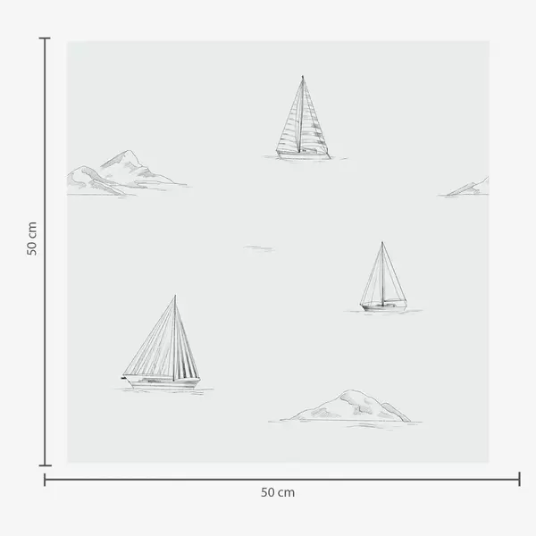 Papel pintado Dibuja yates e islas, con un fondo azul grisáceo fresco Nr. a00654