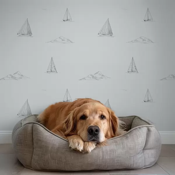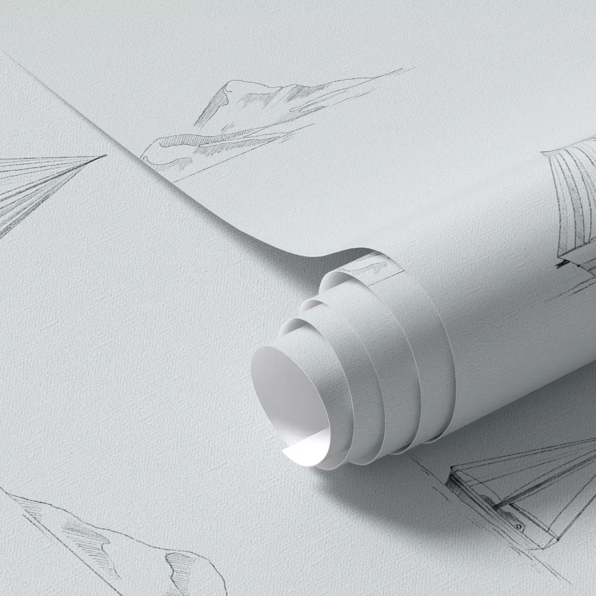 Papel pintado Dibuja yates e islas, con un fondo azul grisáceo fresco Nr. a00654