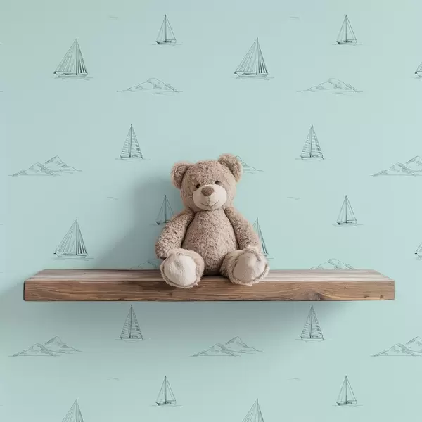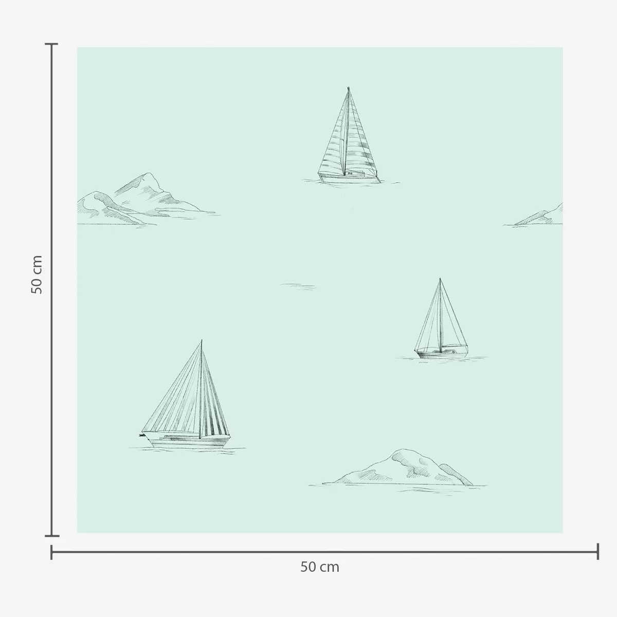 Papel pintado Bocetos de yates e islas, fondo verde menta Nr. a00654v4