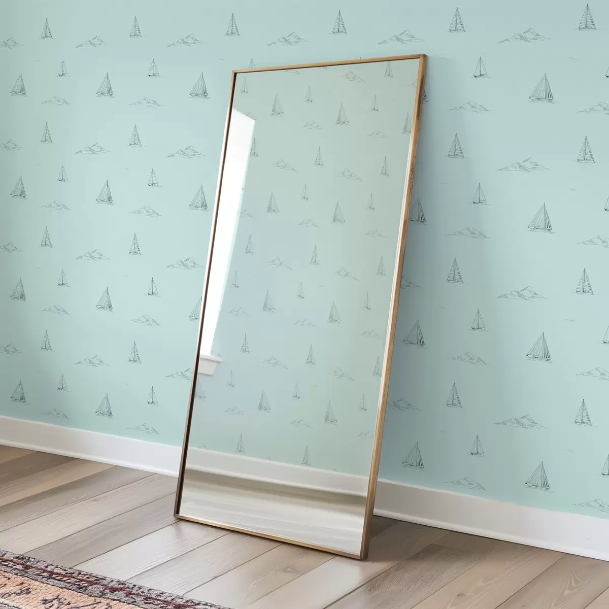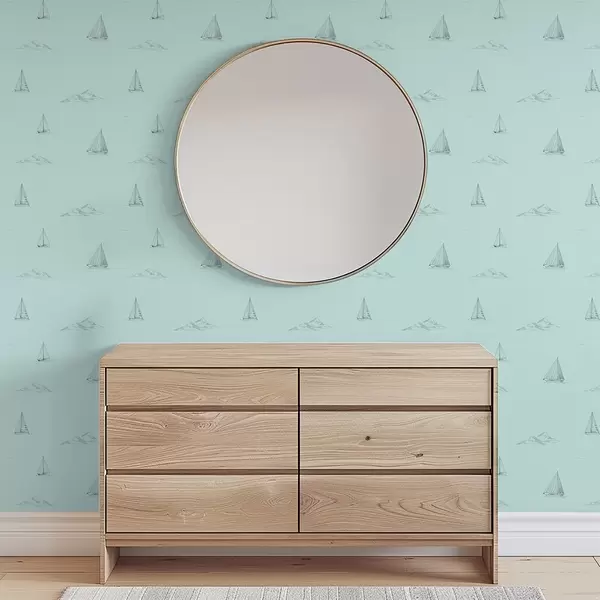 Papel pintado Bocetos de yates e islas, fondo verde menta a00654v4