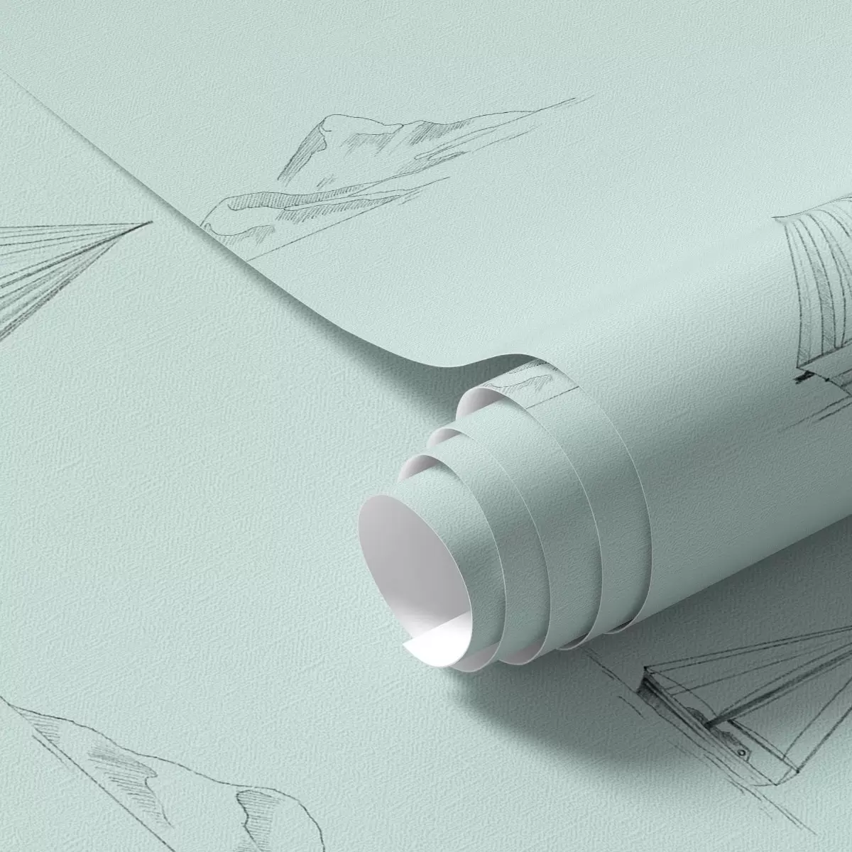 Papel pintado Bocetos de yates e islas, fondo verde menta Nr. a00654v4