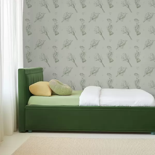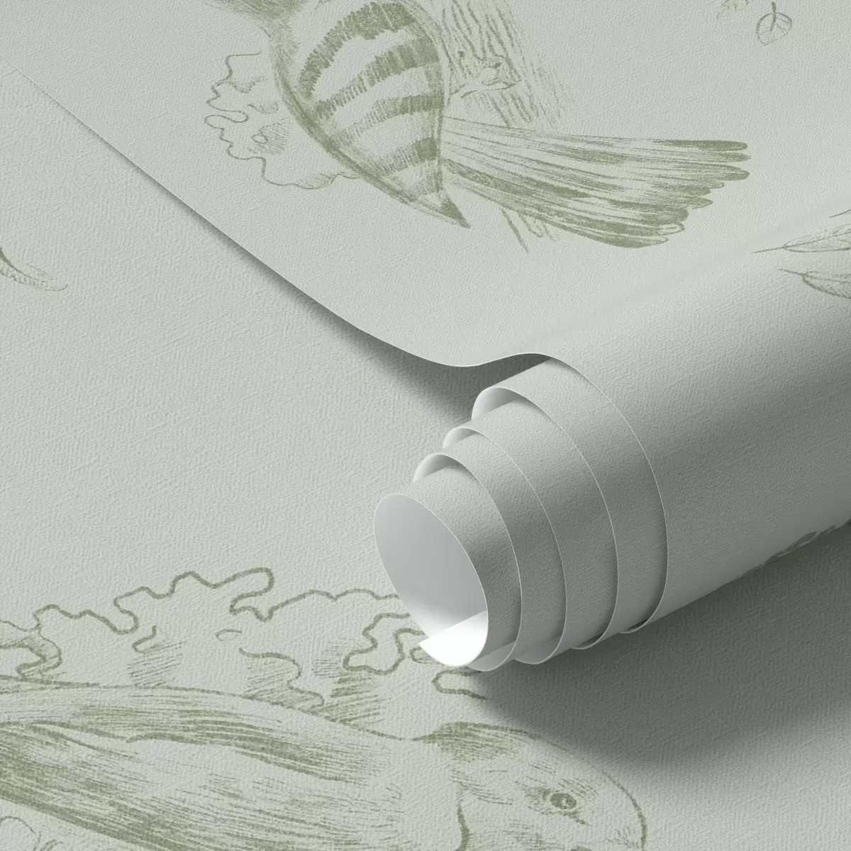 Papel pintado Toile de pájaros: bocetos de pájaros sobre fondo gris verdoso Nr. a00656v1