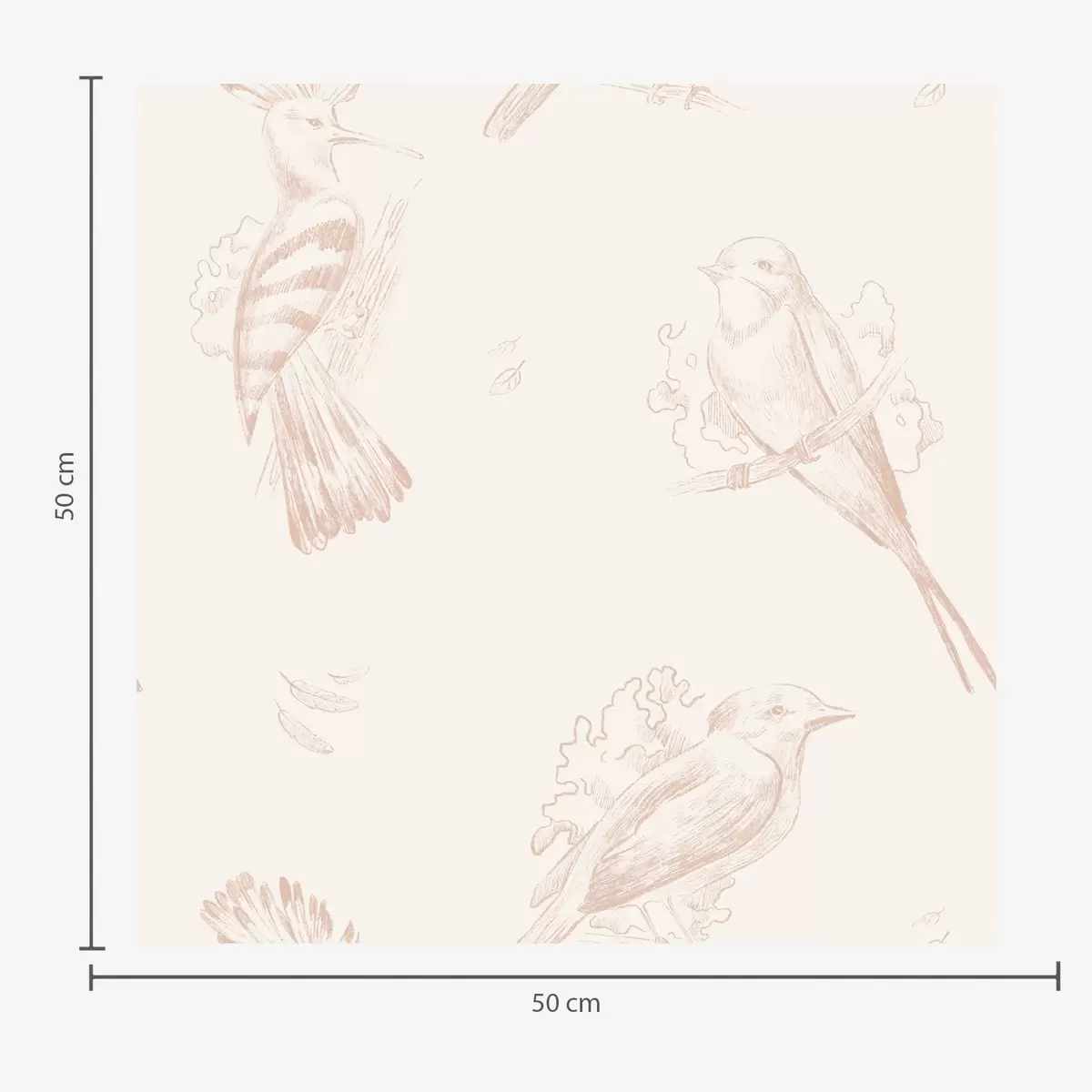 Papel pintado Toile de pájaros: bocetos de pájaros sobre fondo color melocotón-crema. Nr. a00656v2