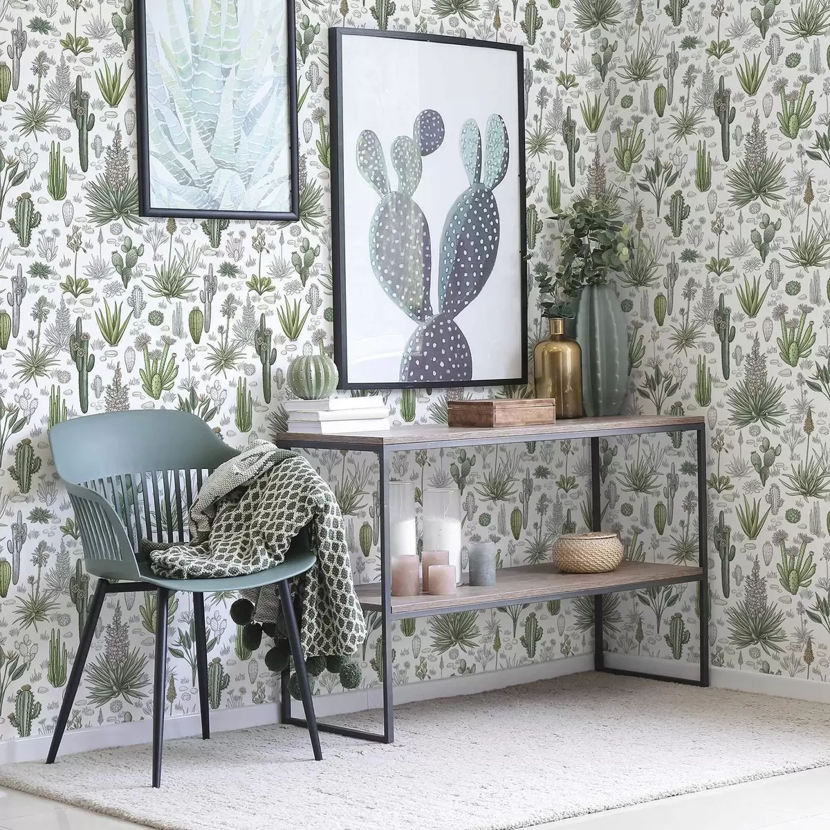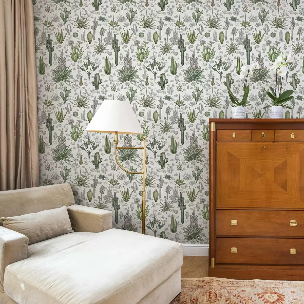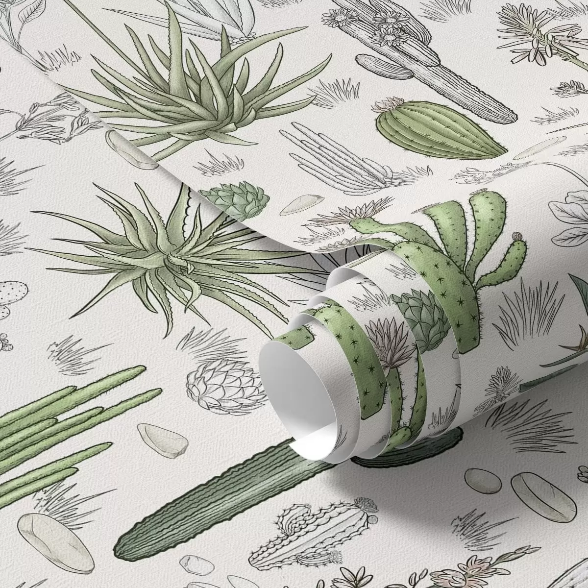 Papel pintado Cactus y suculentas sobre fondo claro, estilo lineal Nr. a00666v1