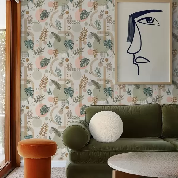Papel pintado Hojas y formas geométricas en tonos cálidos y tranquilos Nr. a00677