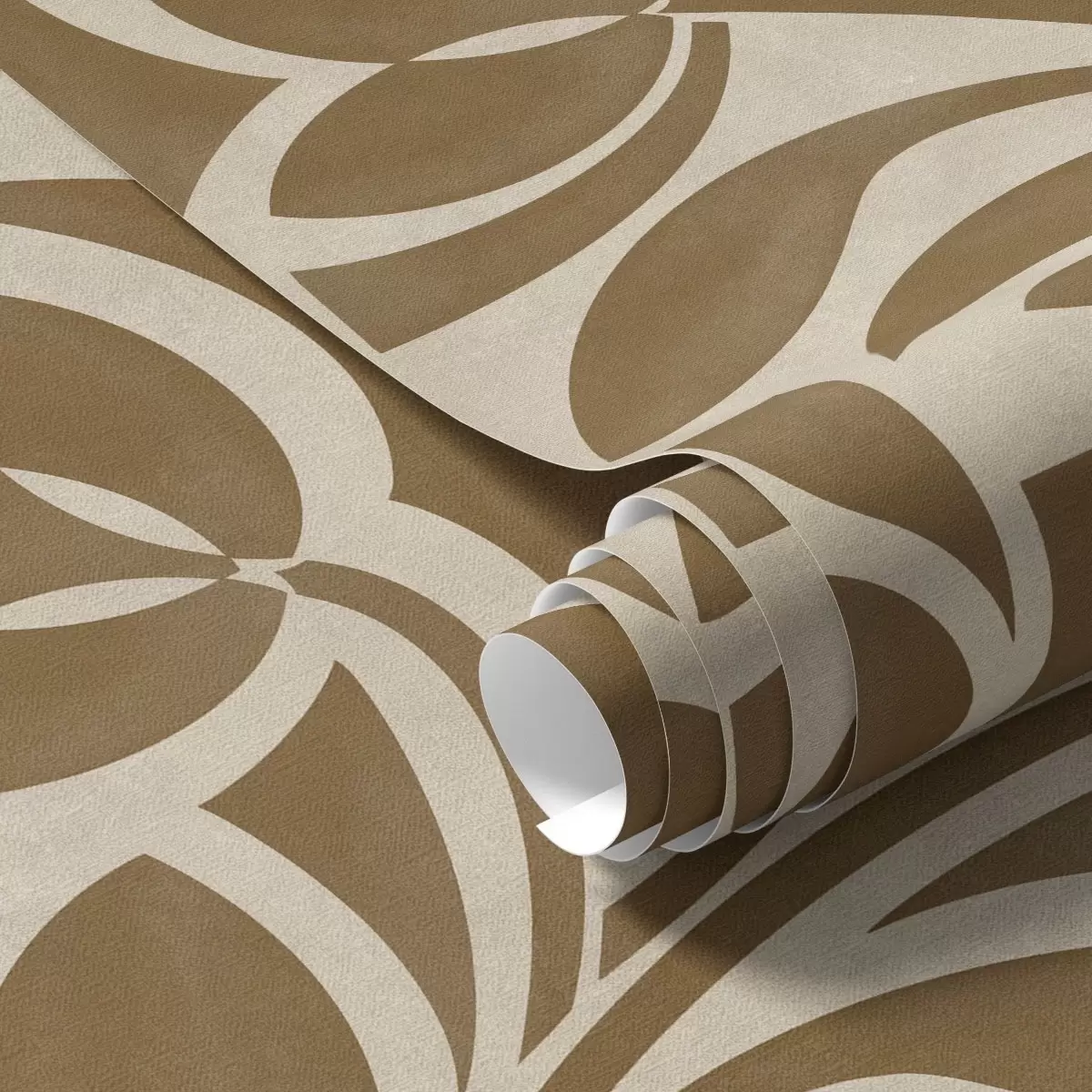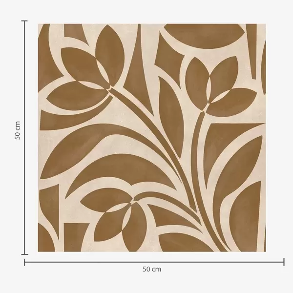 Papel pintado Siluetas geométricas de hojas, marrón caramelo sobre beige Nr. a00679
