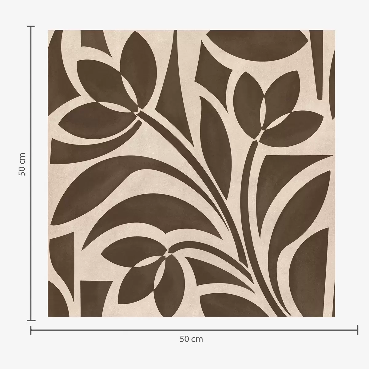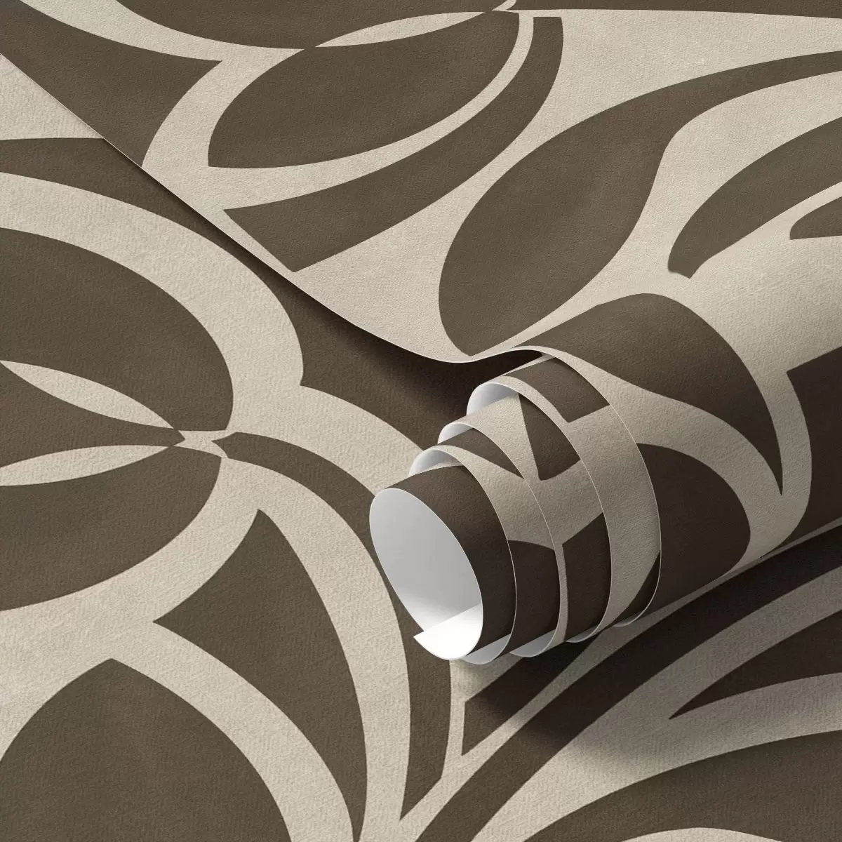 Papel pintado Siluetas geométricas de hojas, marrón oscuro sobre beige Nr. a00679v1