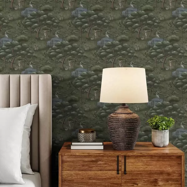 Papel pintado Claro del bosque con cervatillos, conejos y garzas Nr. a00680