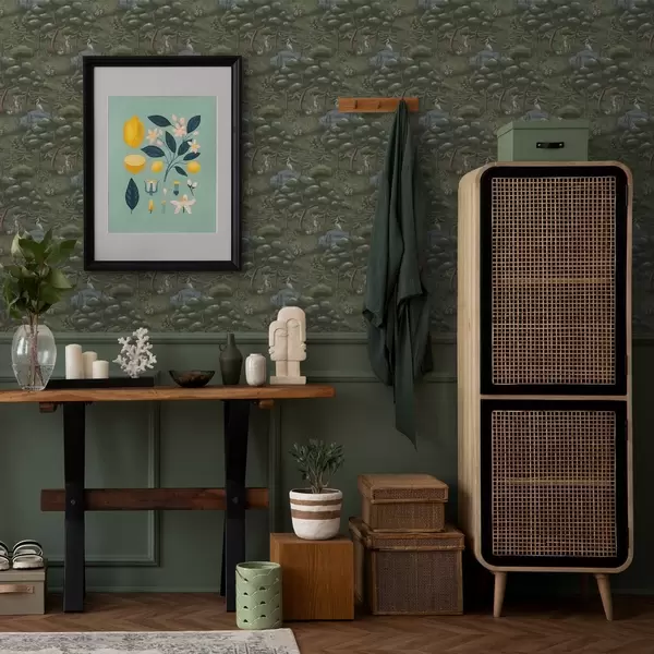 Papel pintado Claro del bosque con cervatillos, conejos y garzas Nr. a00680