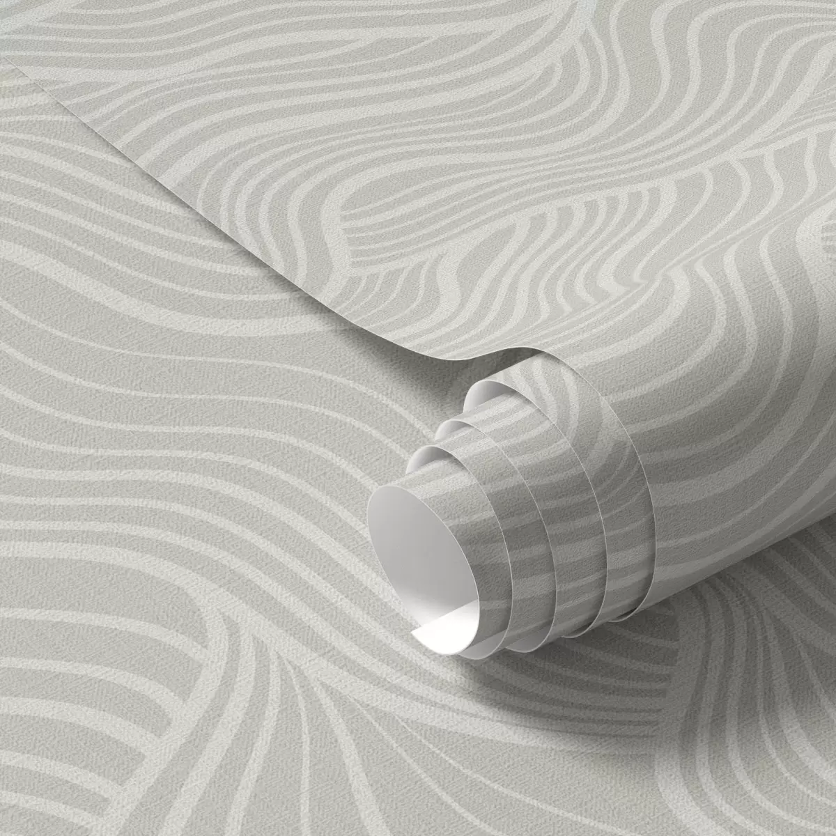 Papel pintado Olas sobre fondo gris oliva con textura de tela Nr. a00681
