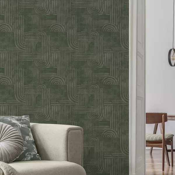 Papel pintado Diseño geométrico con arcos en una paleta de colores verdes Nr. a00697