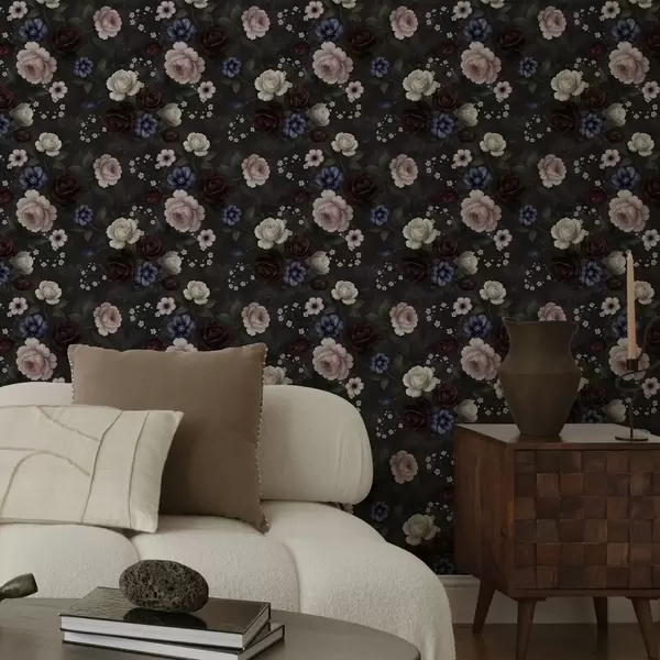 Papel pintado Rosas oscuras, anémonas y peonías sobre un fondo intenso Nr. a00704