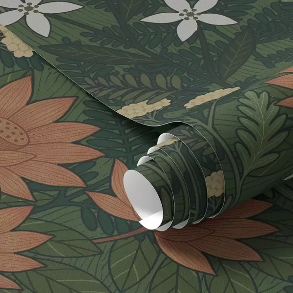 Papel pintado Grandes flores entre follaje verde, composición decorativa Nr. a00708
