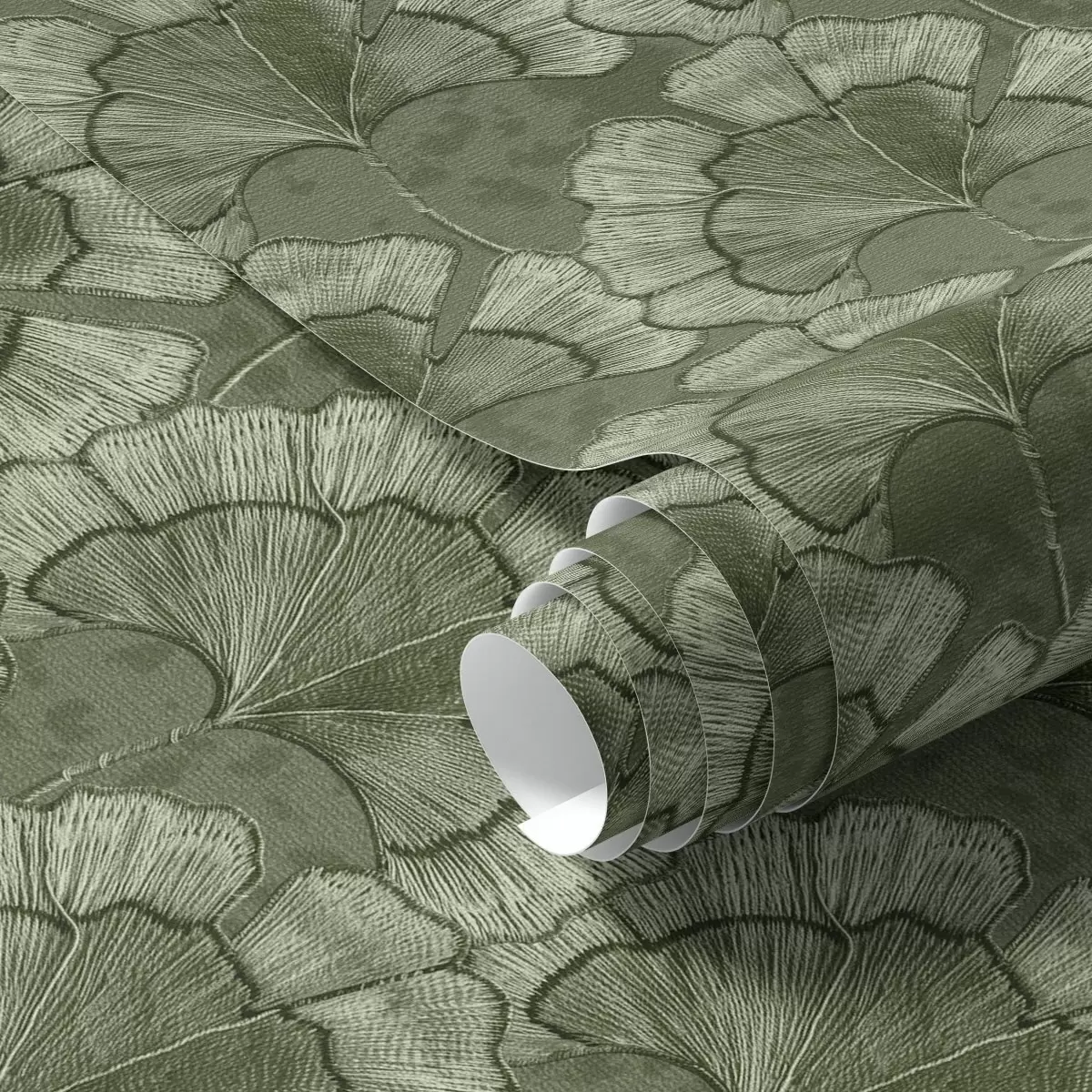 Papel pintado Diseño gráfico con ginkgo en una paleta de colores verdes fríos Nr. a00709