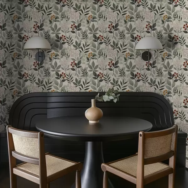 Papel pintado Hojas con bayas, fondo claro Nr. a00713