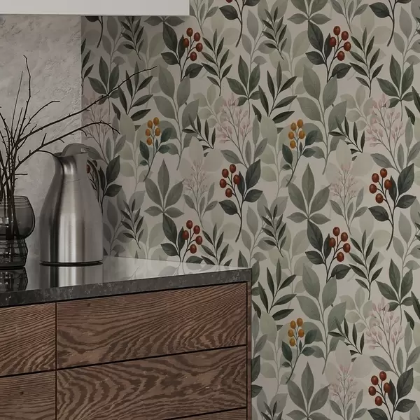 Papel pintado Hojas con bayas, fondo claro Nr. a00713