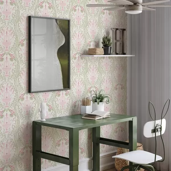 Papel pintado Fuentes, colibríes y volutas verdes sobre fondo claro Nr. a00723
