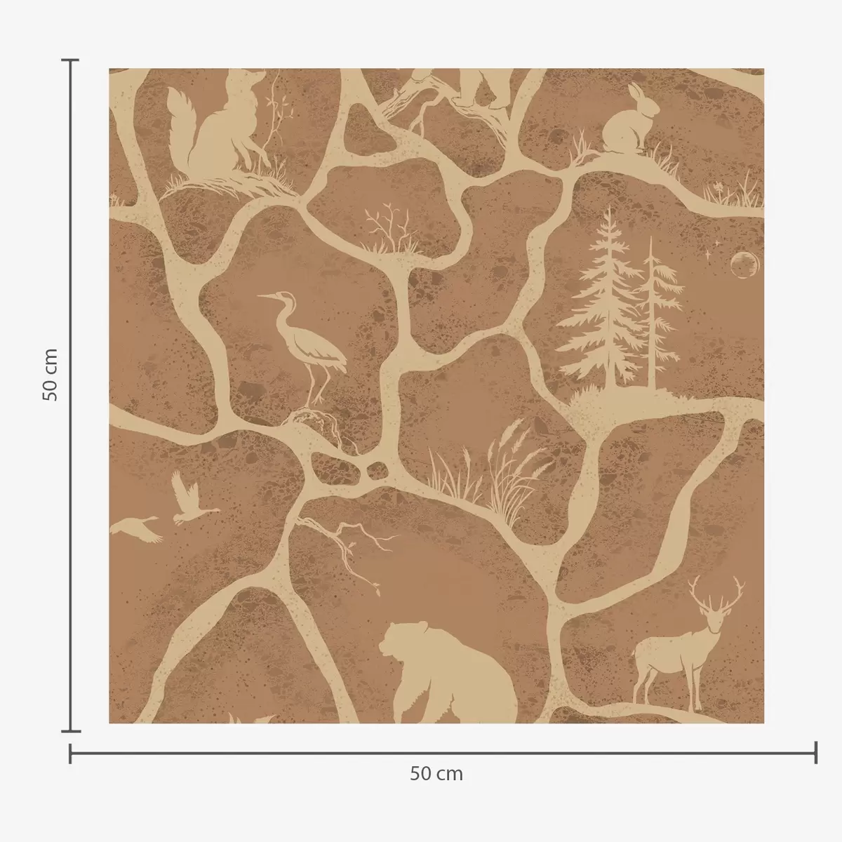 Papel pintado Siluetas de animales y árboles en un paisaje natural con textura de piedra Nr. a00727