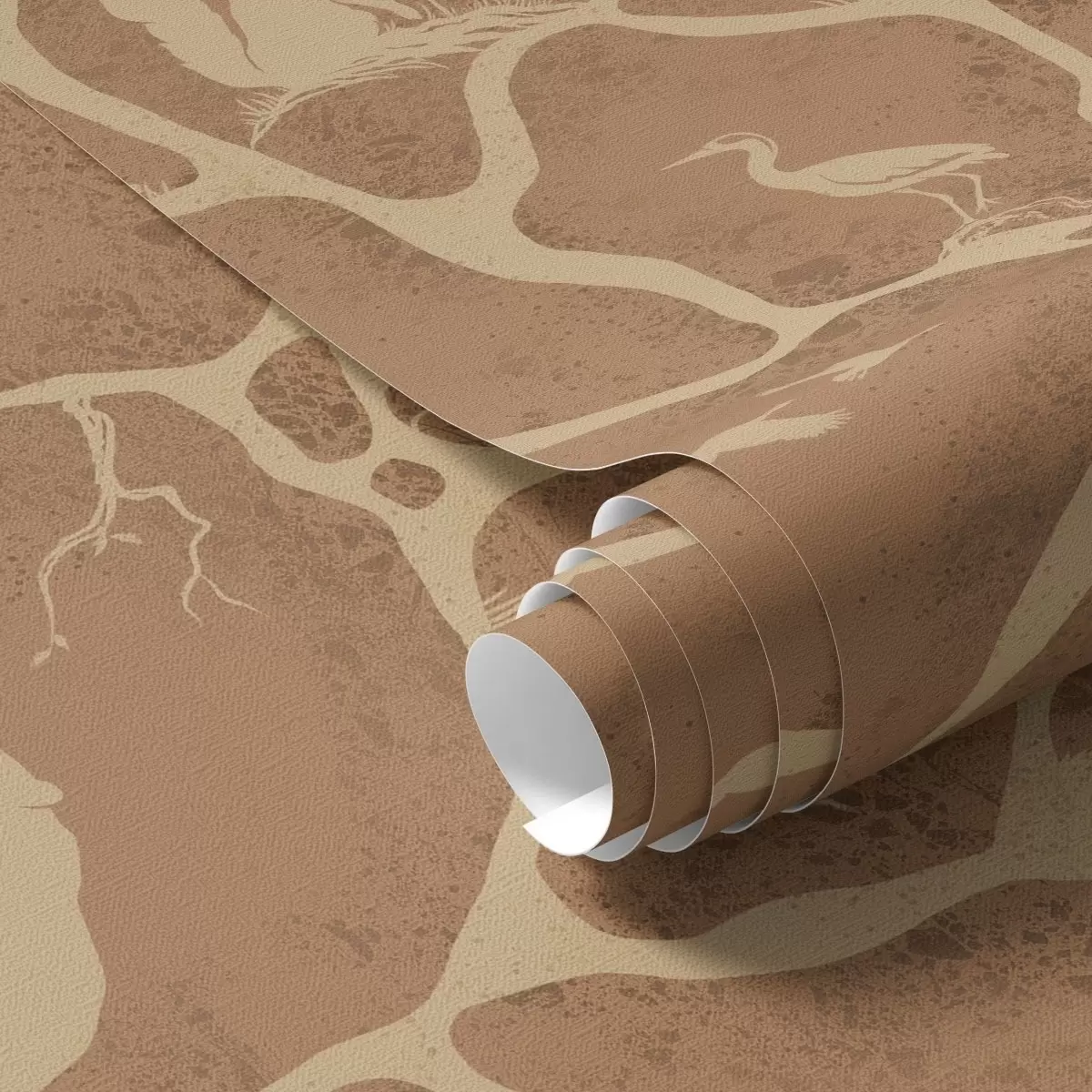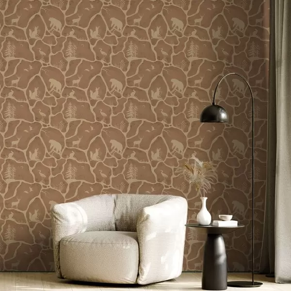 Papel pintado Siluetas de animales y árboles en un paisaje natural con textura de piedra Nr. a00727