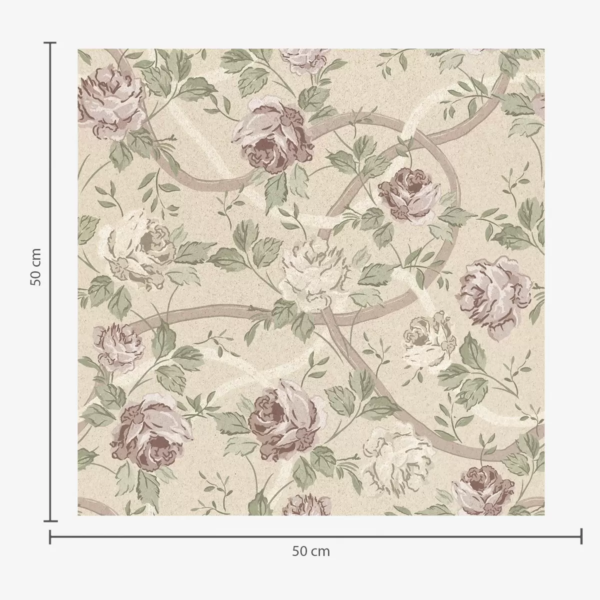 Papel pintado Rosas con hojas verdes sobre un fondo beige cálido Nr. a00729