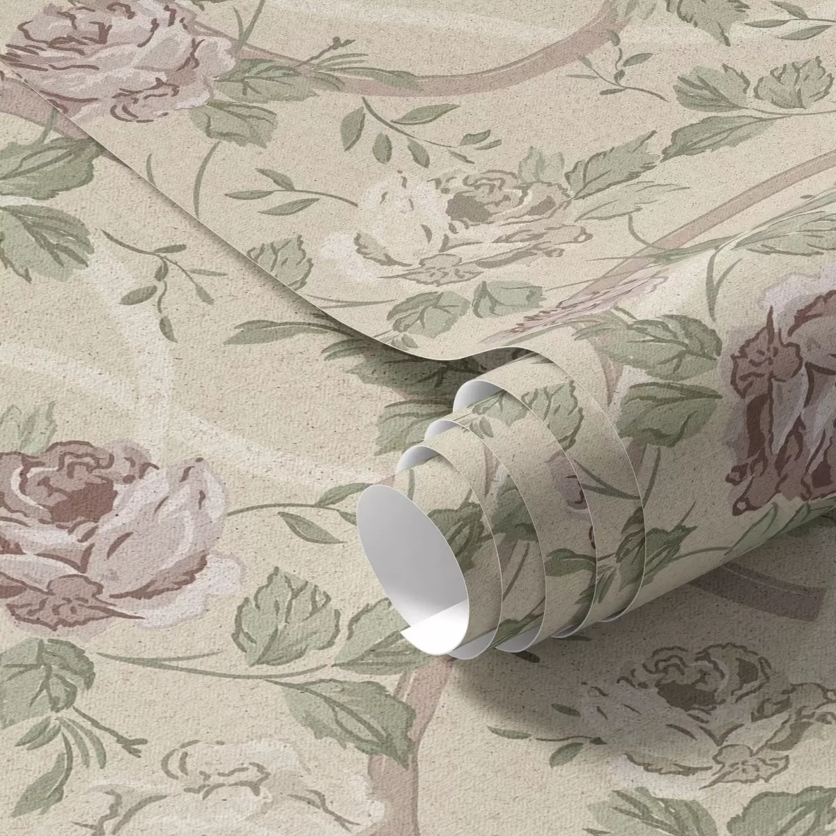 Papel pintado Rosas con hojas verdes sobre un fondo beige cálido Nr. a00729