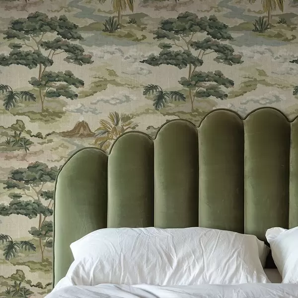 Papel pintado Paisaje con río, árboles y palmeras en tonos suaves Nr. a00736