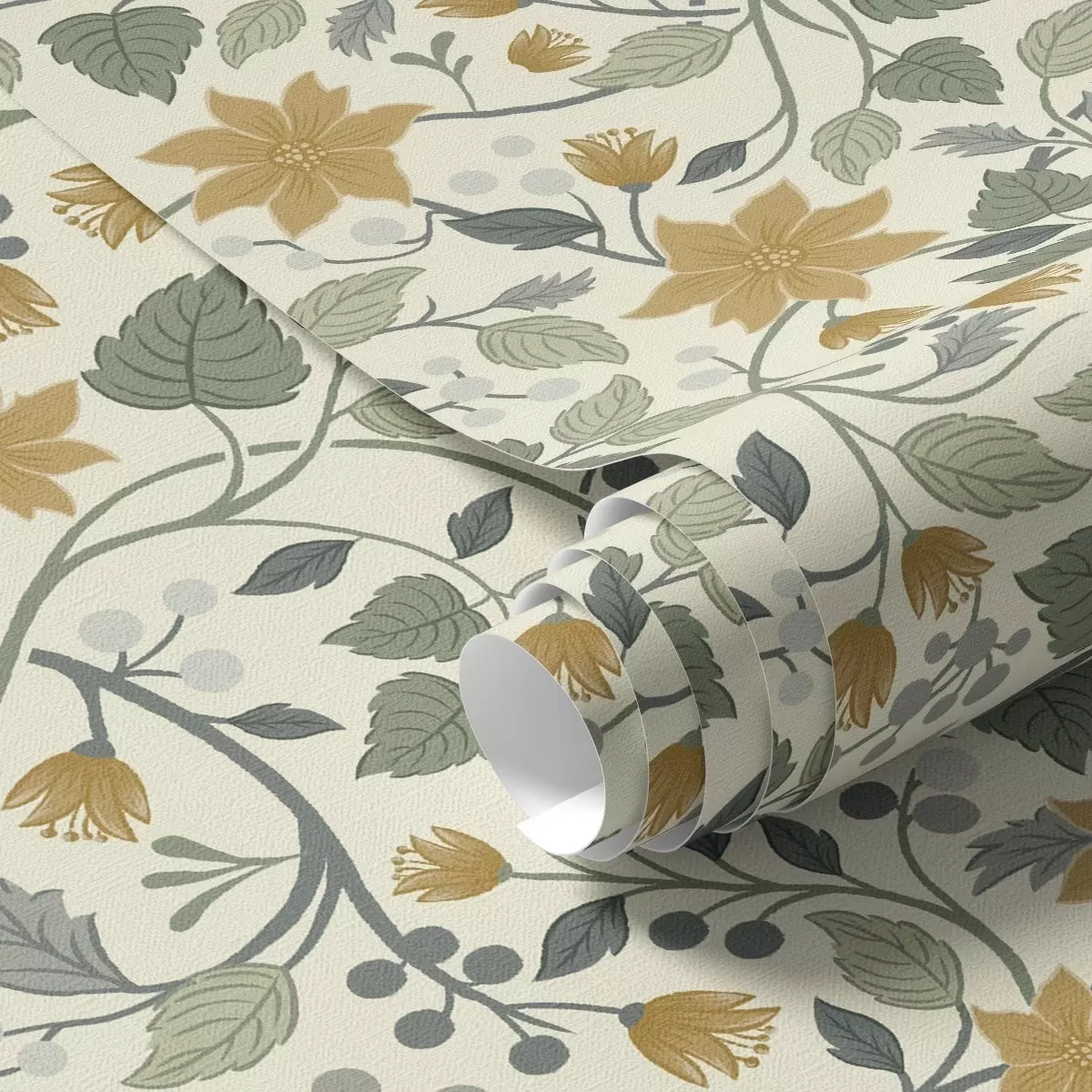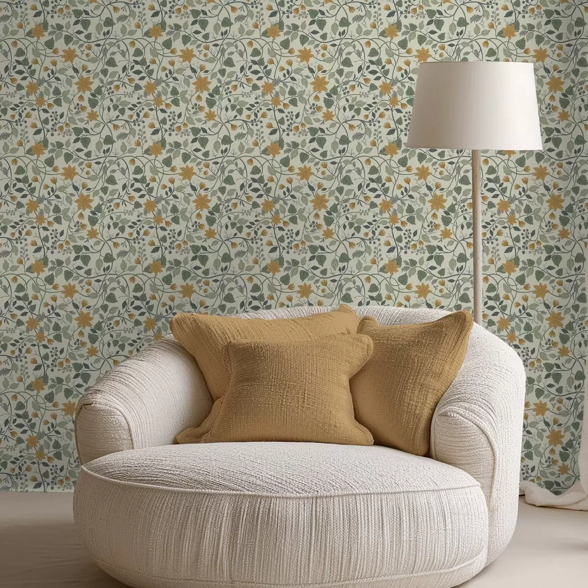 Papel pintado Ramas trepadoras con flores amarillas y bayas Nr. a00750