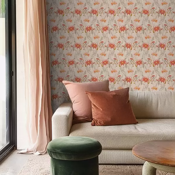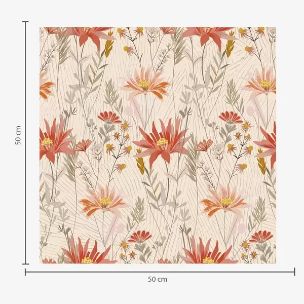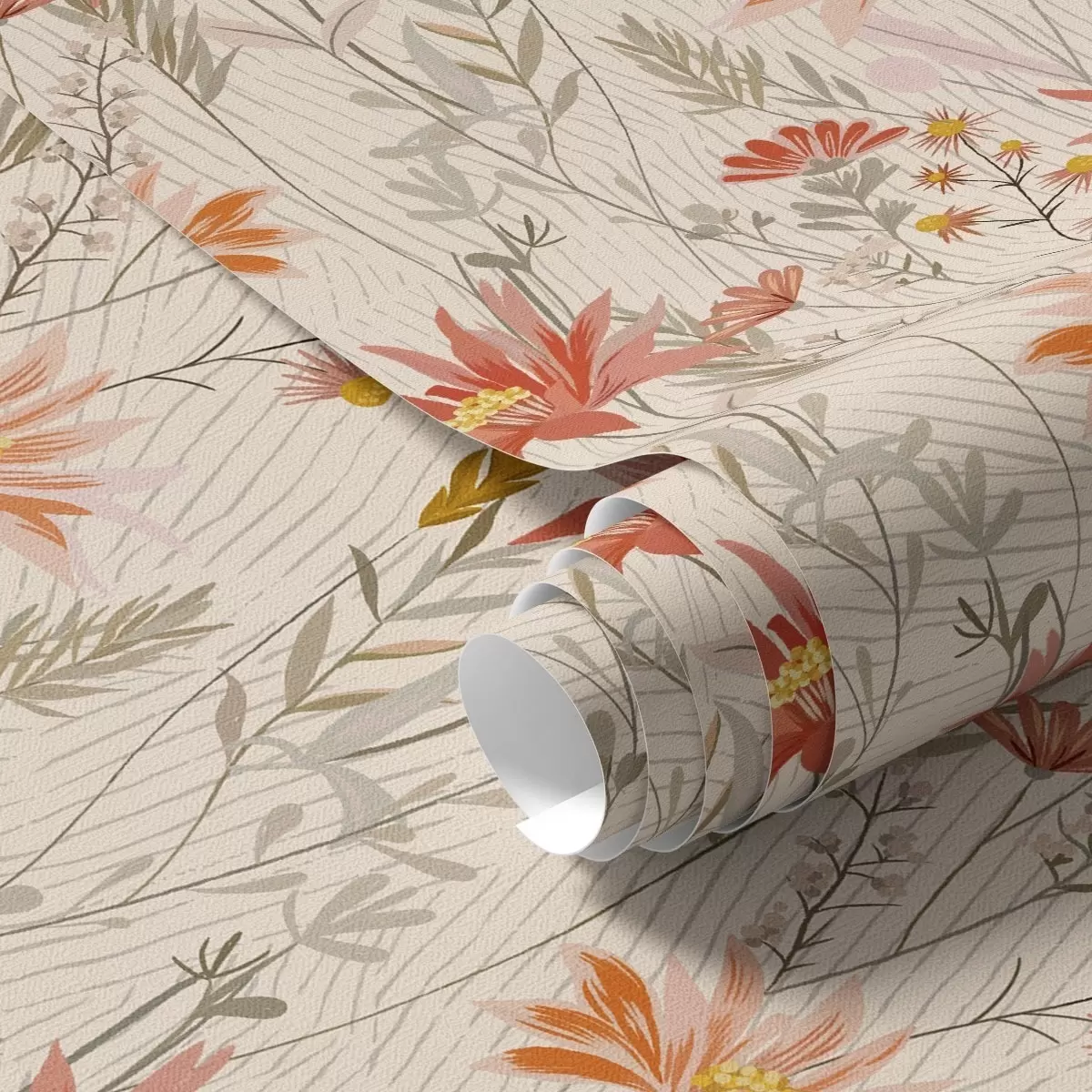 Papel pintado Flores silvestres en tonos cálidos sobre fondo beige Nr. a00751