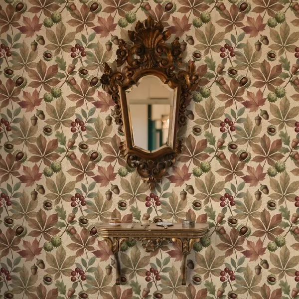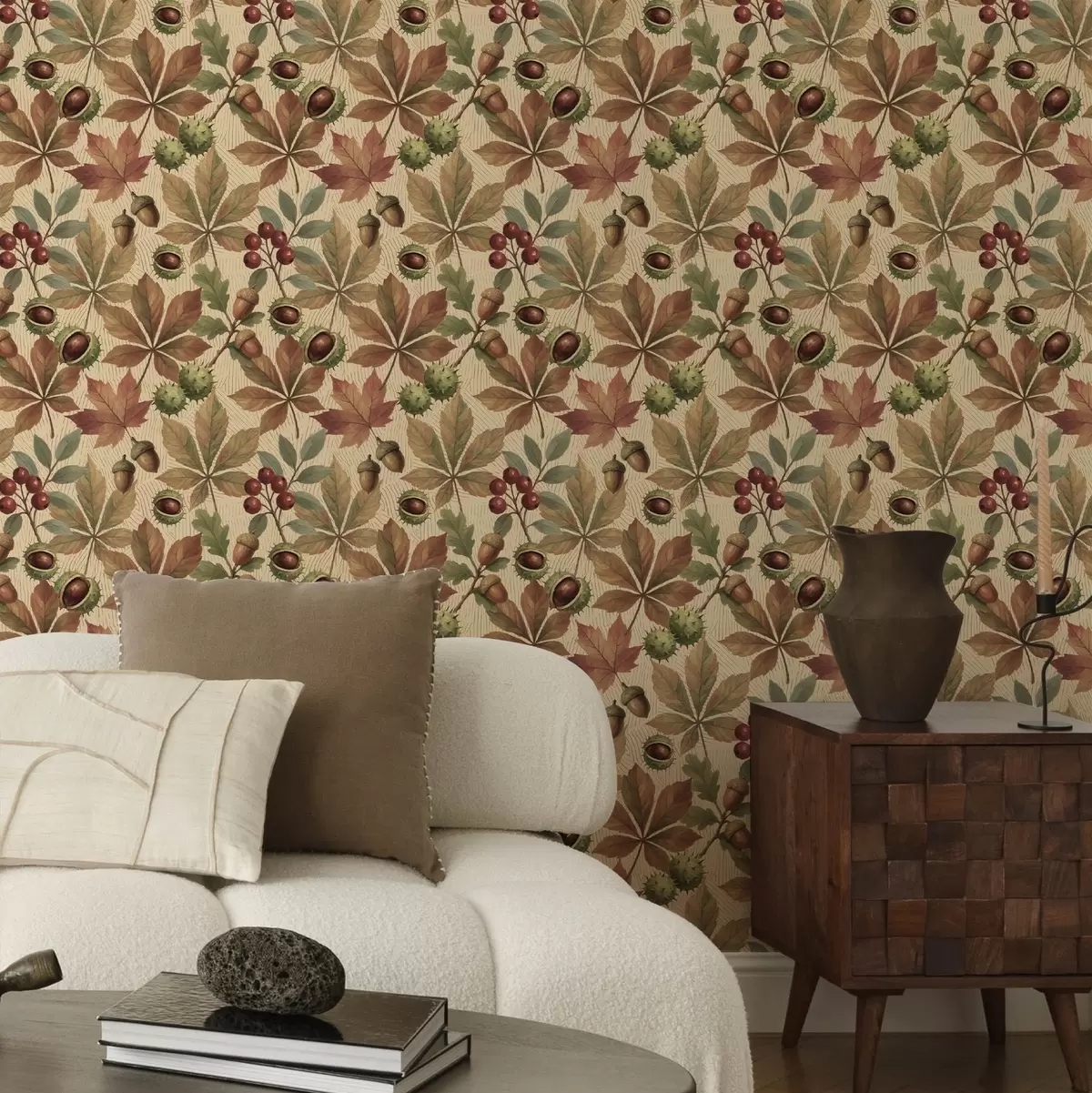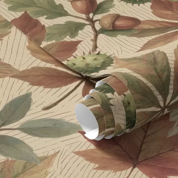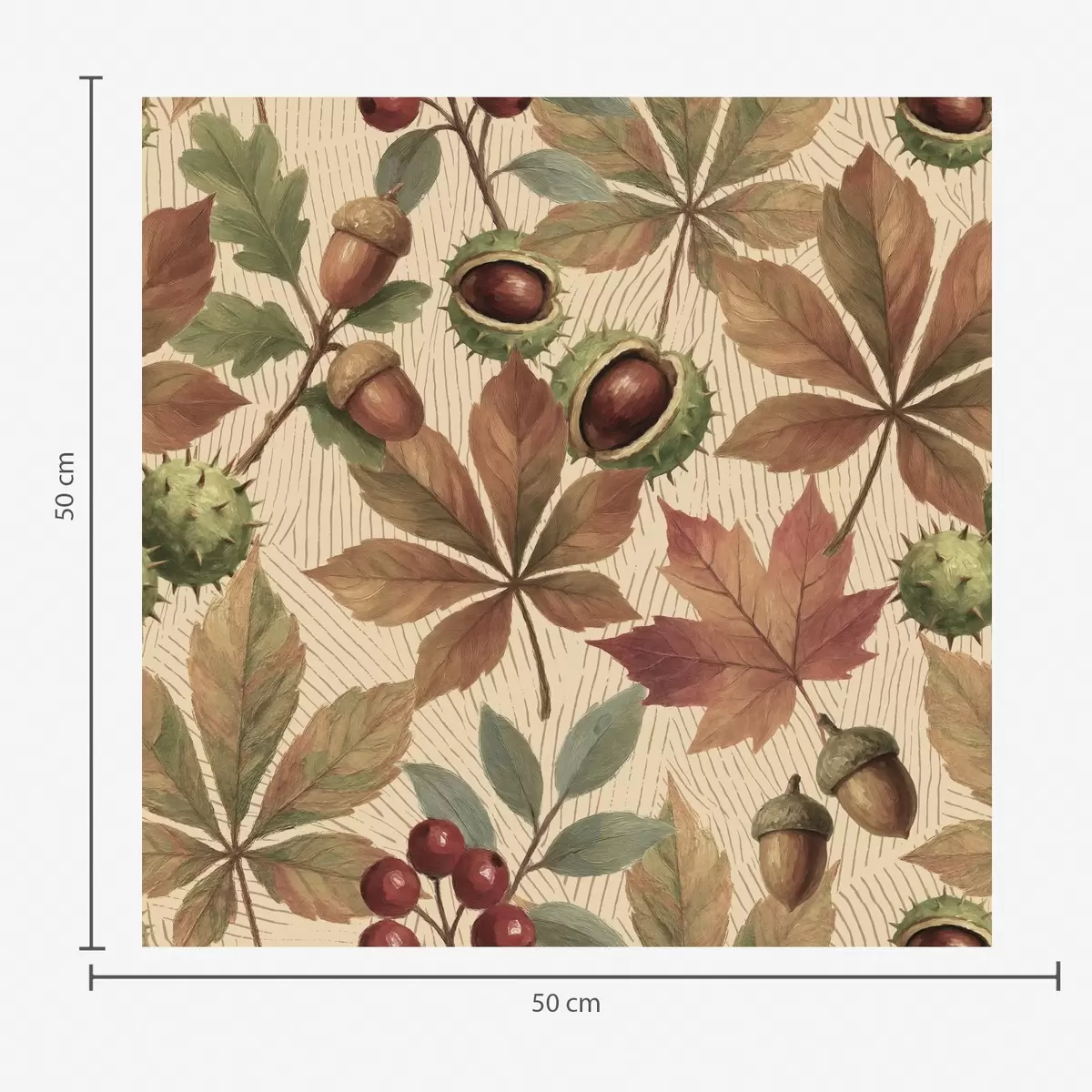 Papel pintado Hojas otoñales, bellotas y bayas sobre fondo beige Nr. a00754