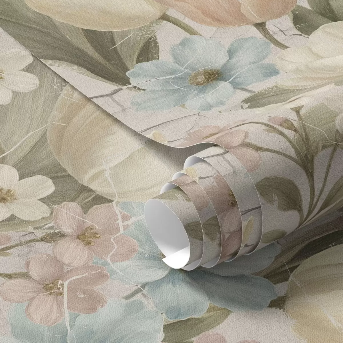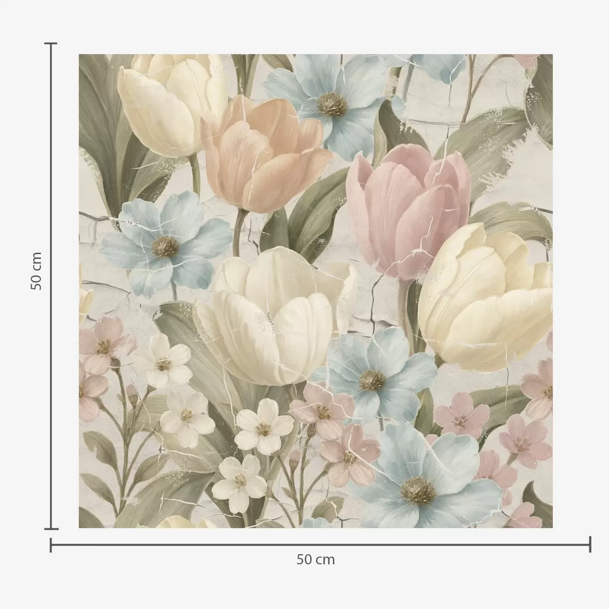 Papel pintado Tulipanes y flores en tonos pastel sobre un fondo claro agrietado Nr. a00756