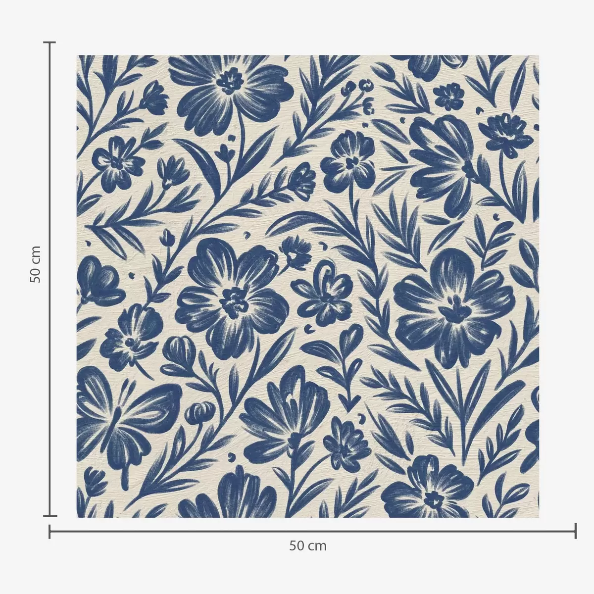 Papel pintado Adorno floral azul con mariposas Nr. a00758