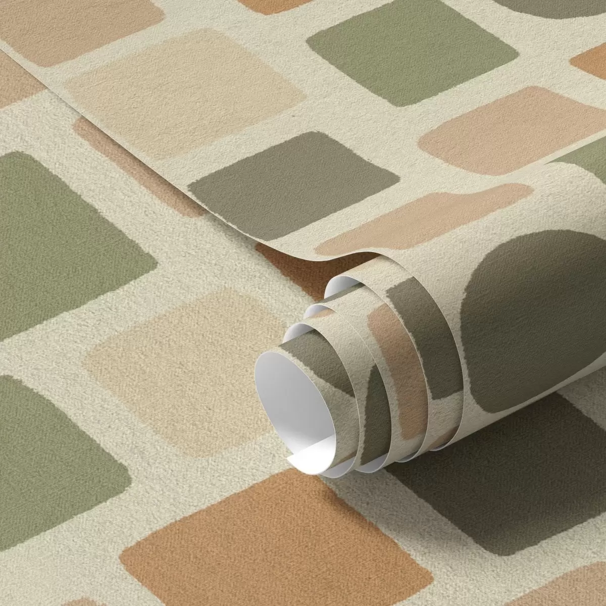 Papel pintado Patrón geométrico de cuadrados y círculos en tonos cálidos Nr. a00759