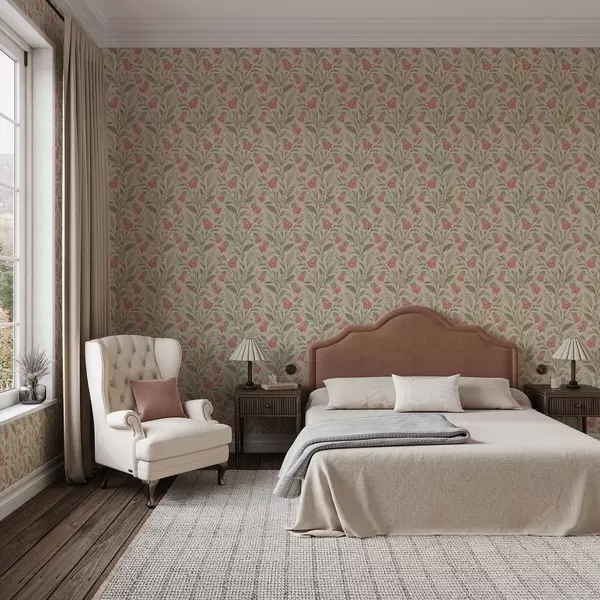 Papel pintado Pequeñas flores con forma de campana en tonos rosa y verde Nr. a00760