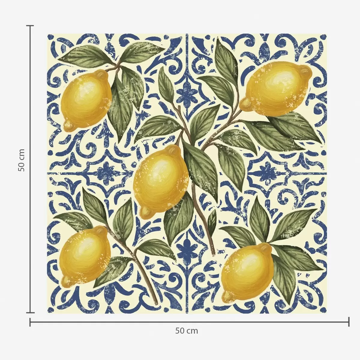 Papel pintado Ramas de limón con fondo ornamental azul Nr. a00763
