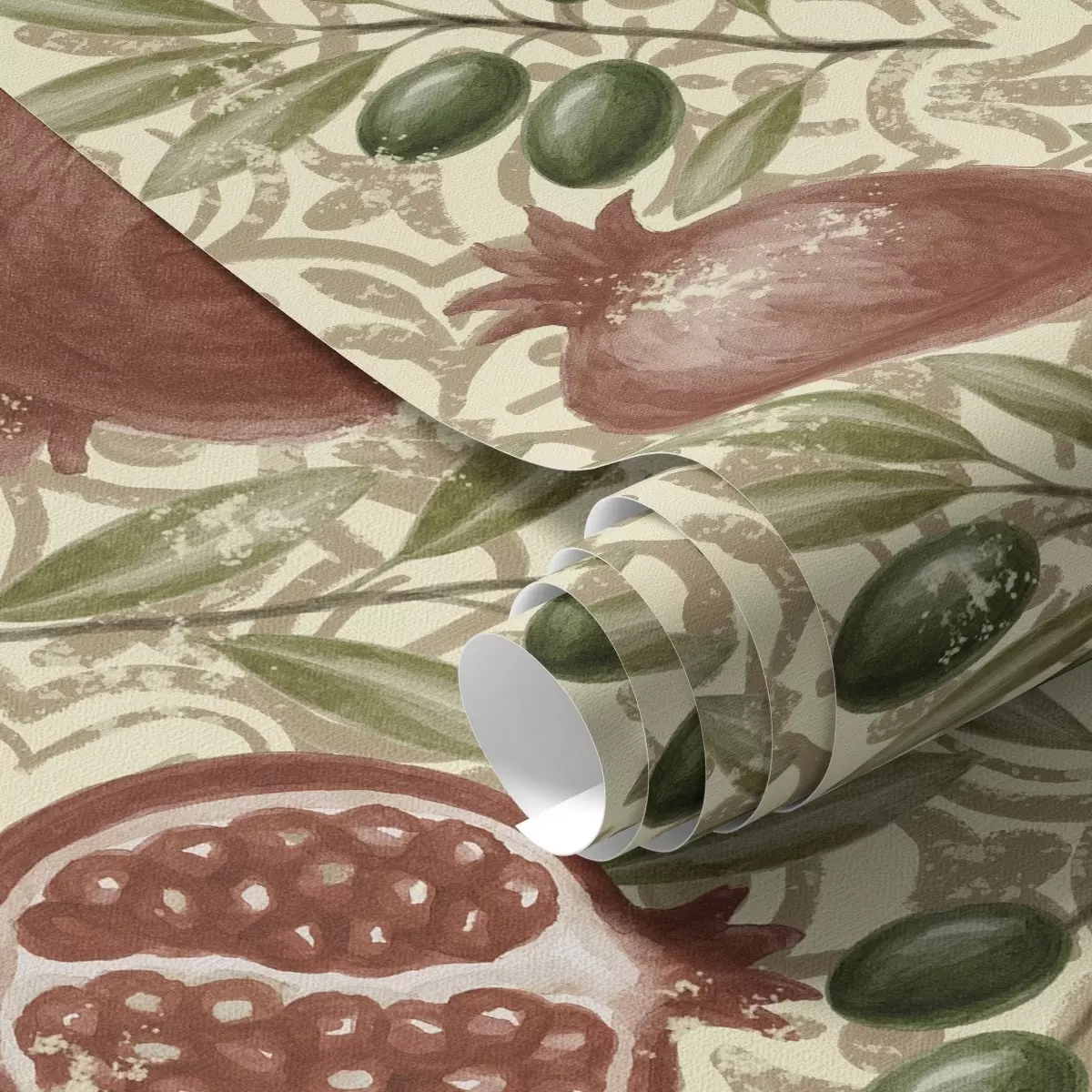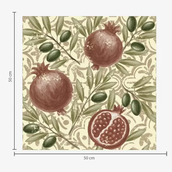 Papel pintado Granada y ramas de olivo sobre fondo ornamental Nr. a00764