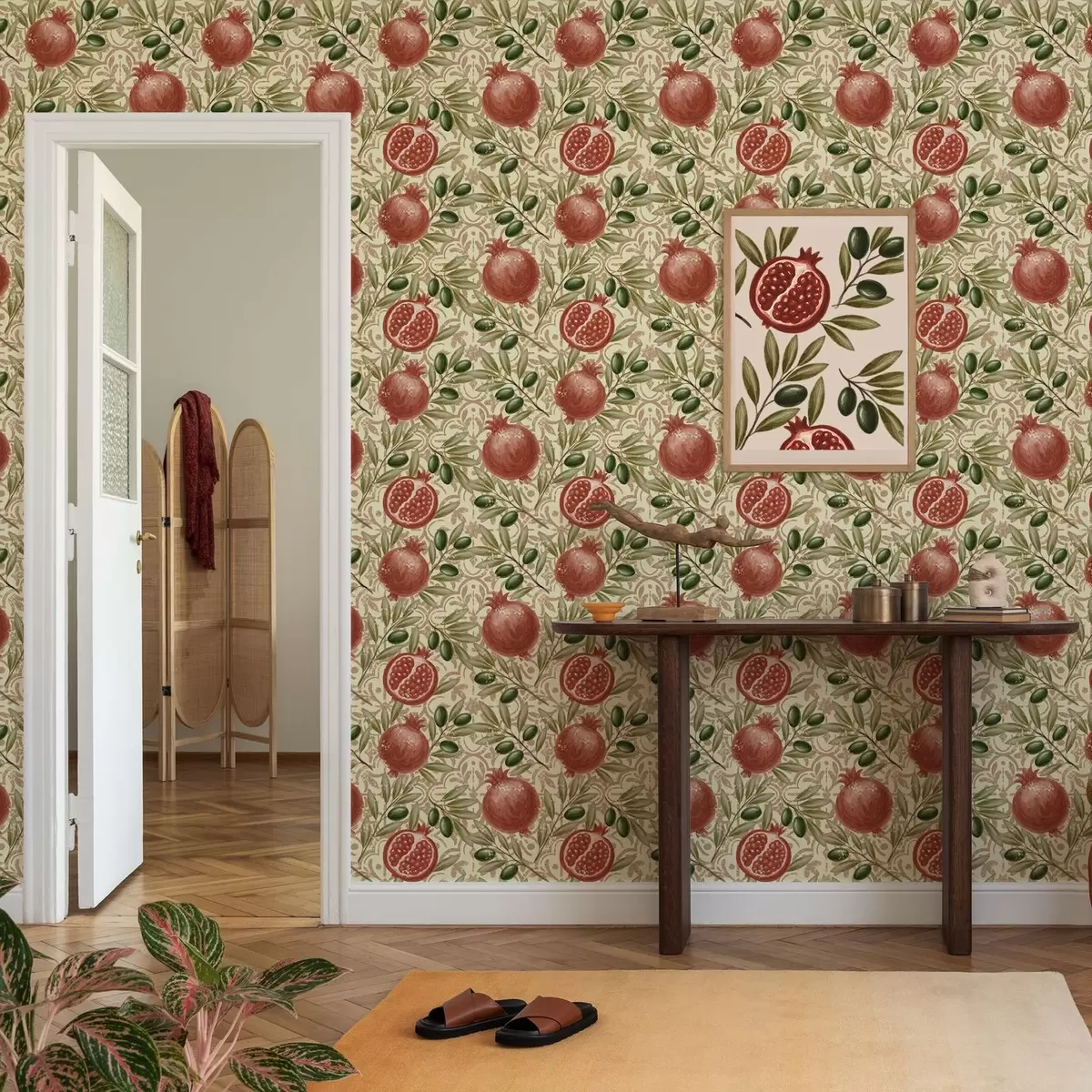 Papel pintado Granada y ramas de olivo sobre fondo ornamental Nr. a00764