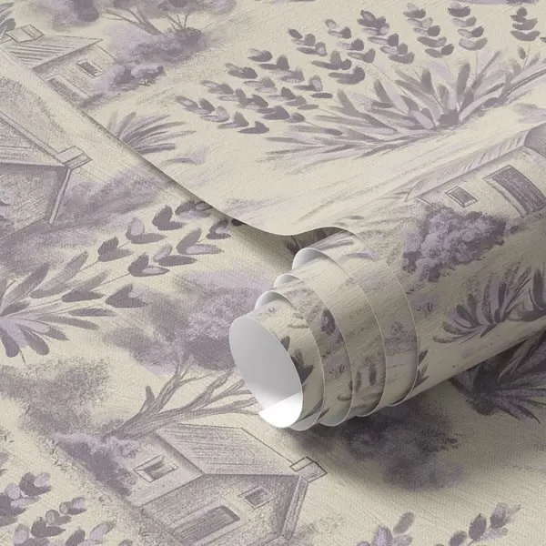 Papel pintado Campos de lavanda y casas en tonos pastel Nr. a00765