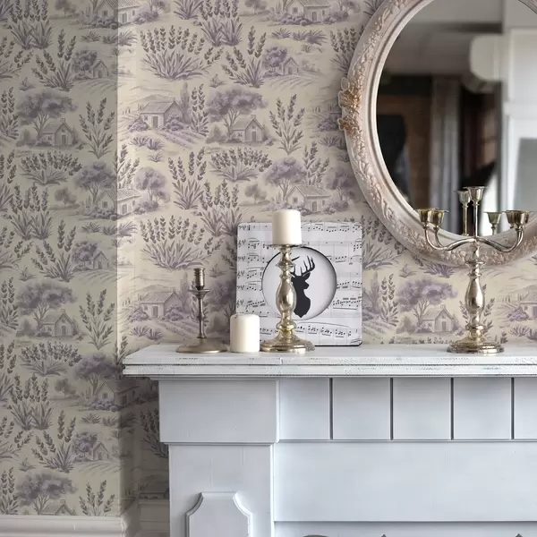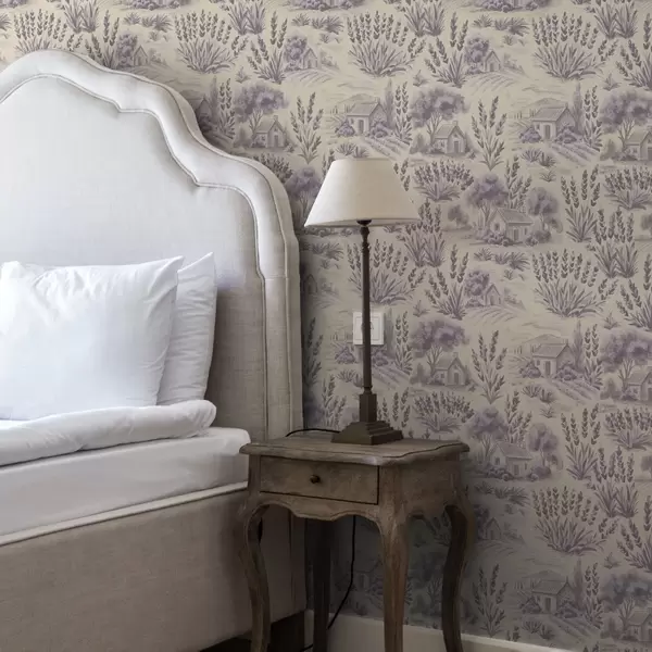Papel pintado Campos de lavanda y casas en tonos pastel Nr. a00765