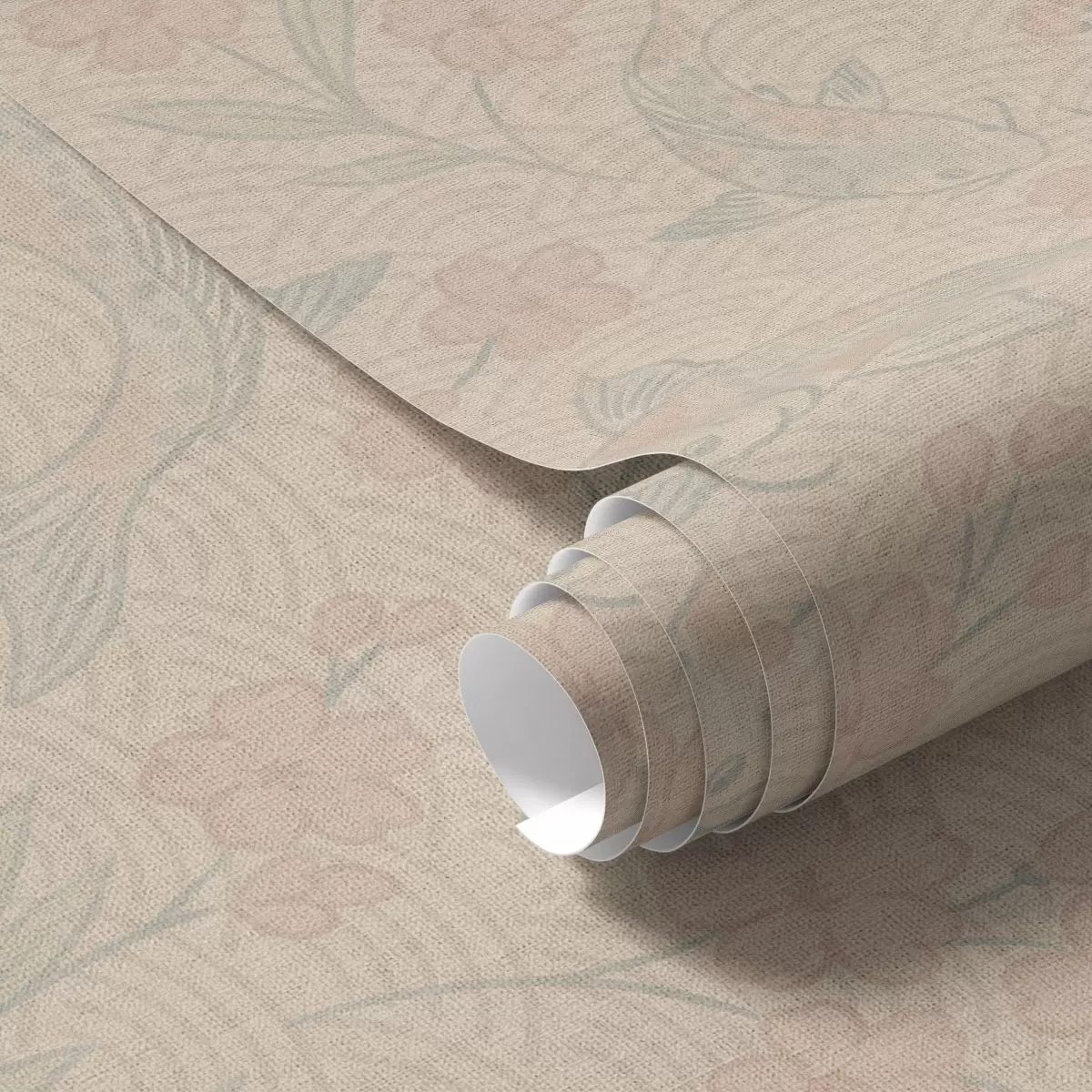 Papel pintado Carpas entre flores en suaves tonos beige y rosa Nr. a00766