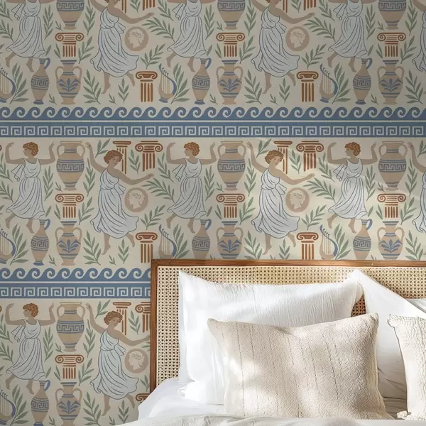 Papel pintado Adorno griego antiguo con figuras, jarrones y columnas Nr. a00768