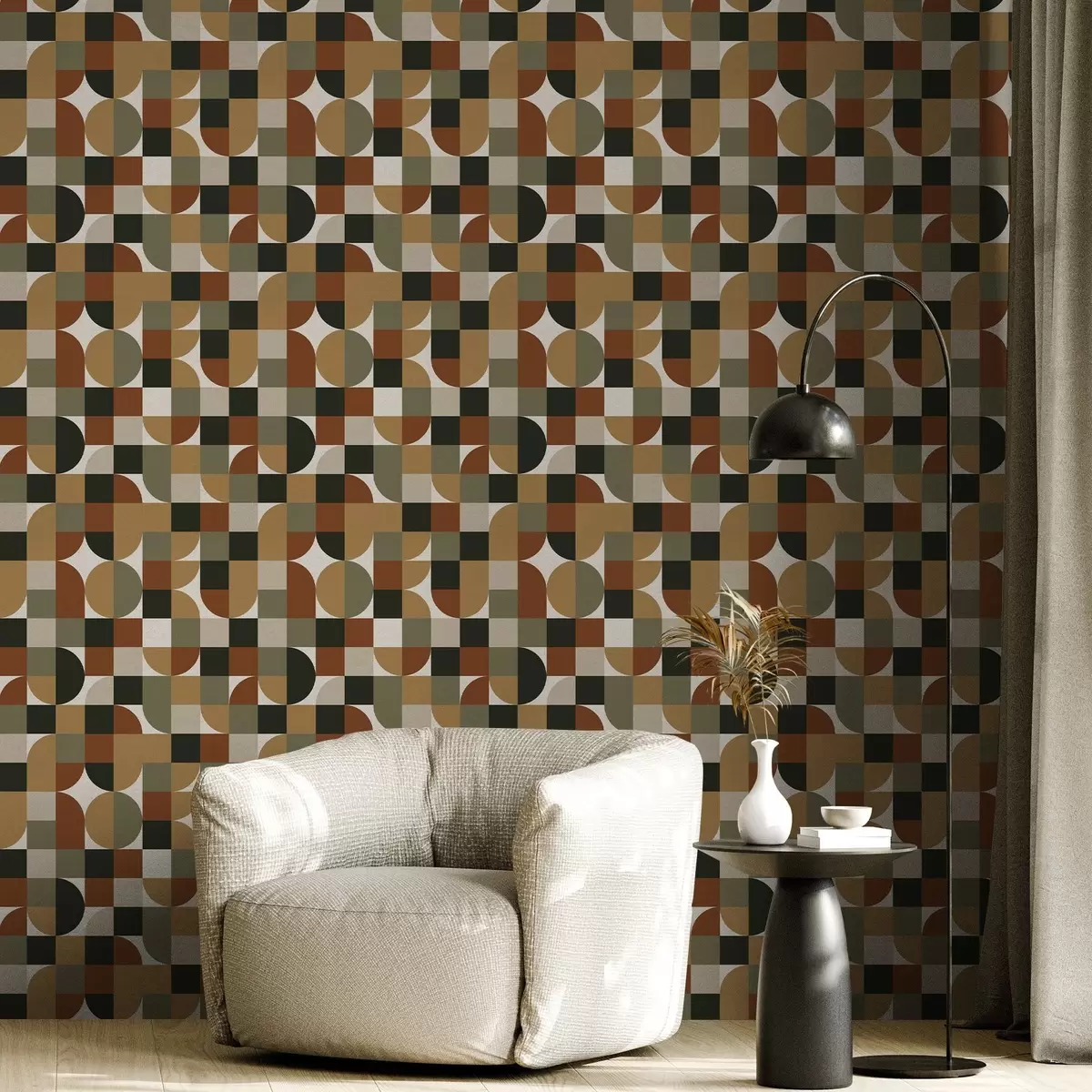 Papel pintado Geometría modular en cálidos tonos tierra Nr. a00770