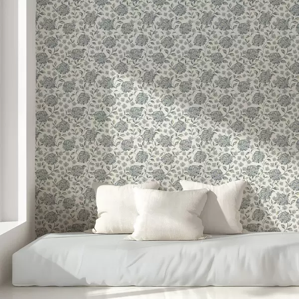 Papel pintado Flores y hojas frondosas en una paleta de colores gris azulados Nr. a00778